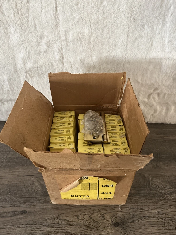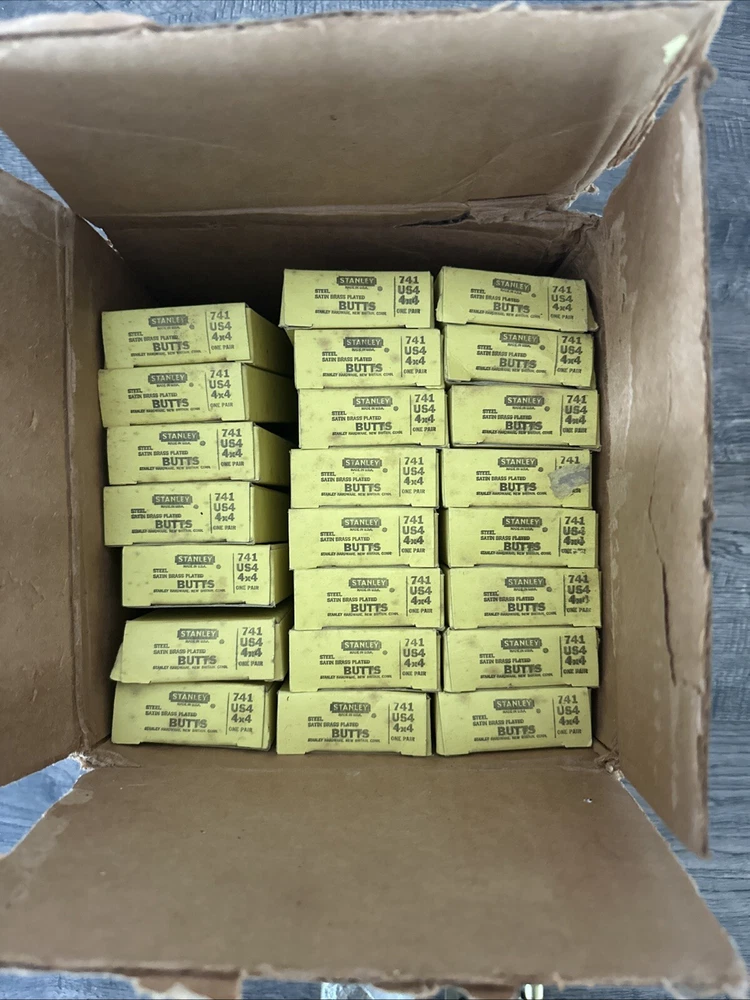 Vintage Stanley 4x4 Steel Satin Brass Plated Door Hinges Butts 741 25 Pairs USA