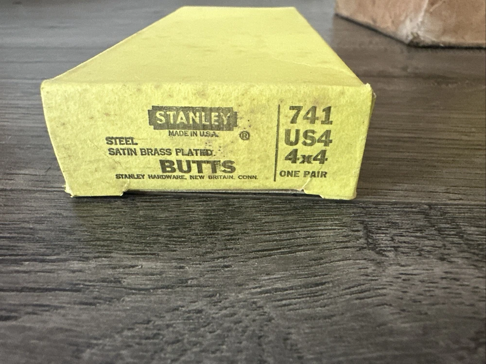 Brand:StanleyModel:741Seller Notes:“new with some bonus dust”Color:BrassMaterial:Steel, Brass PlatedSuitable For:DoorCountry/Region of Manufacture:United StatesFinish:Polished BrassType:Butt