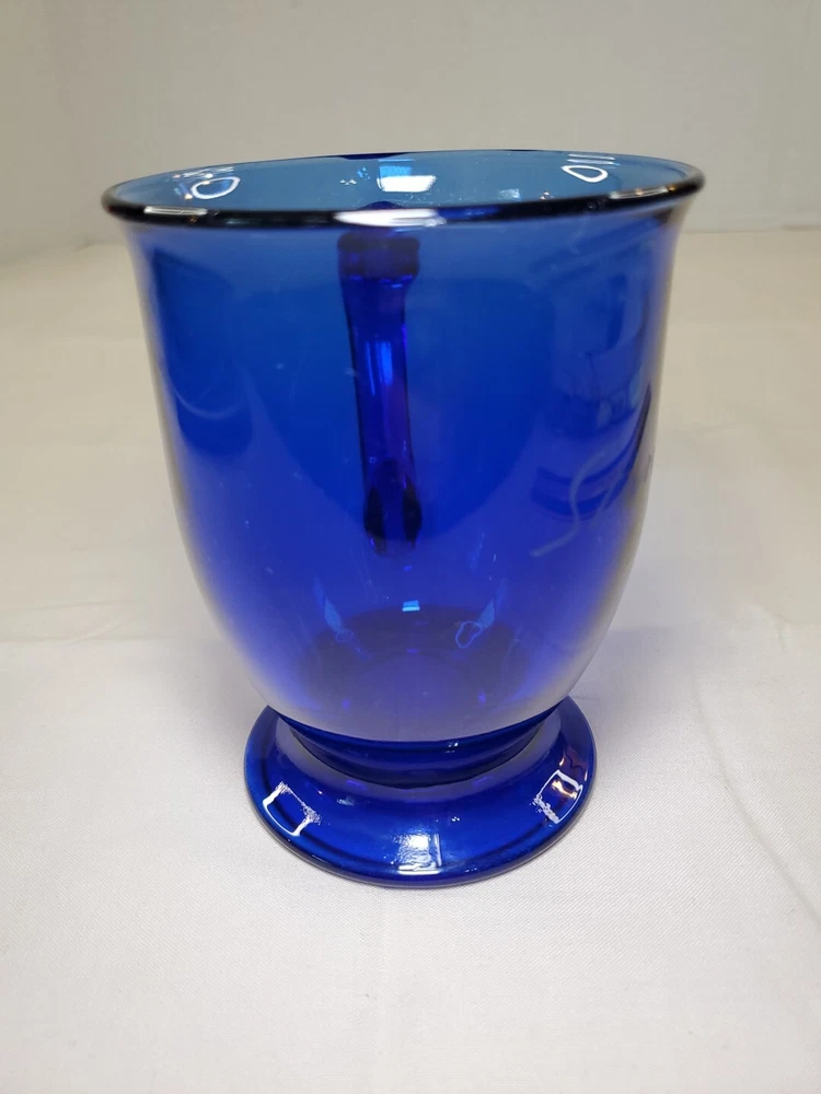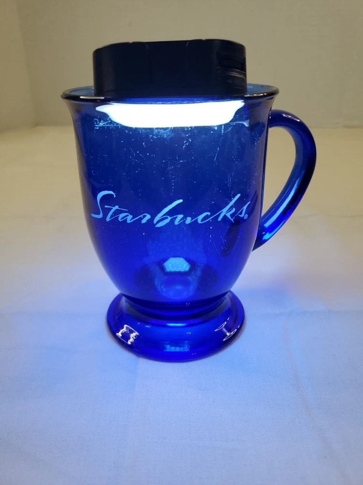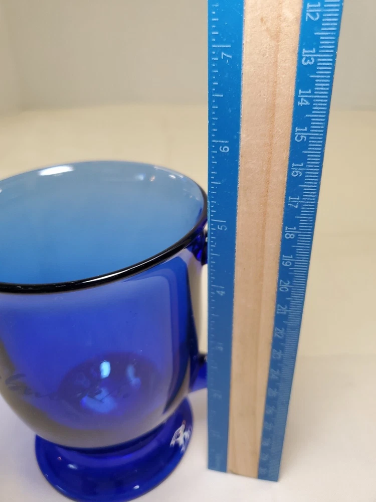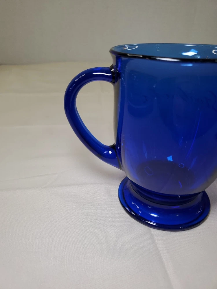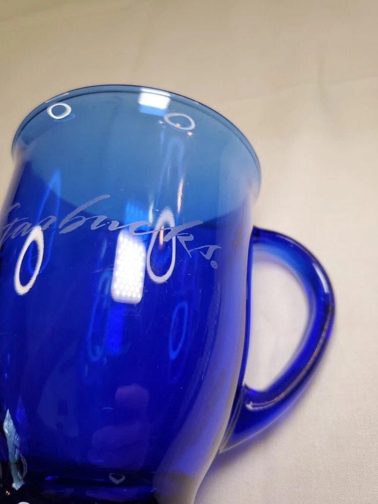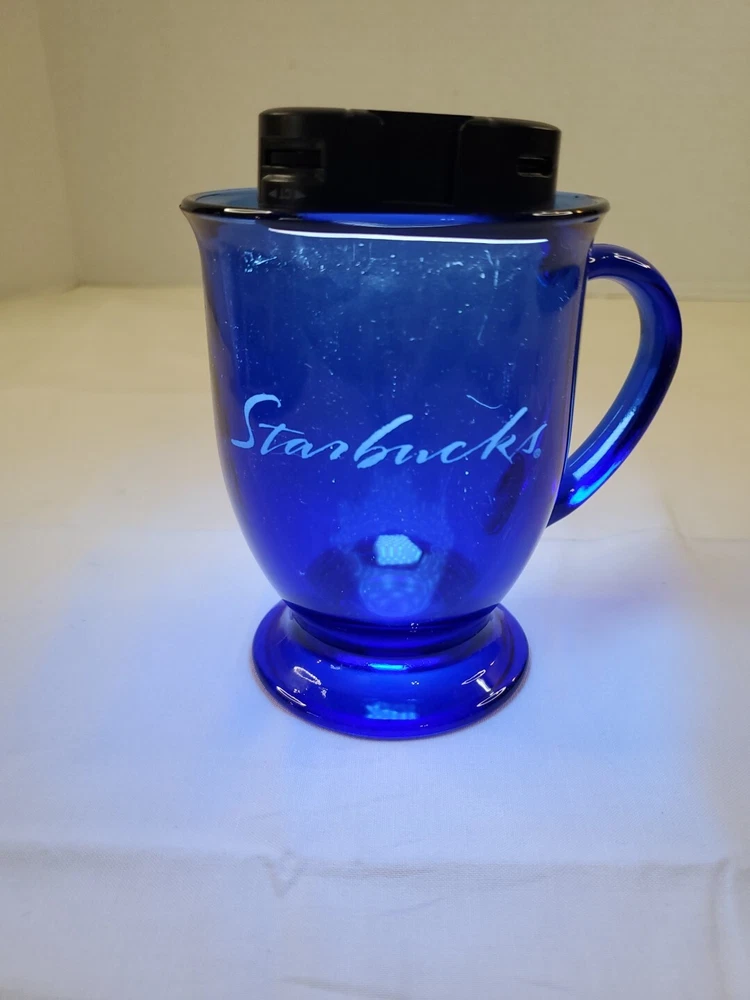 THANK YOU FOR VISITING OUR STORE. WE SHIP 6 DAYS A WEEK (UNLESS THERE IS A FEDERAL HOLIDAY). MOST ITEMS WILL SHIP IN A STURDY BOX AS NEEDED. PLEASE FEEL FREE TO REACH OUT IF YOU HAVE ANY QUESTIONS. WE WILL COMBINE SHIPPING WHEN AVAILABLE. This vintage Starbucks glass mug is a must-have for any coffee and tea enthusiast out there! With a beautiful cobalt blue color and the iconic Starbucks logo etched on the front, this mug is a true collector's item. Made in the United States by Anchor Hocking, this mug is sturdy and perfect for enjoying your favorite beverage. The mug has a 14 oz capacity, making it a great addition to any collection. Whether you're a Starbucks fanatic or just looking for a unique piece to add to your coffee and tea collection, this vintage glass mug is sure to impress. Don't miss out on the chance to own a piece of Starbucks histor