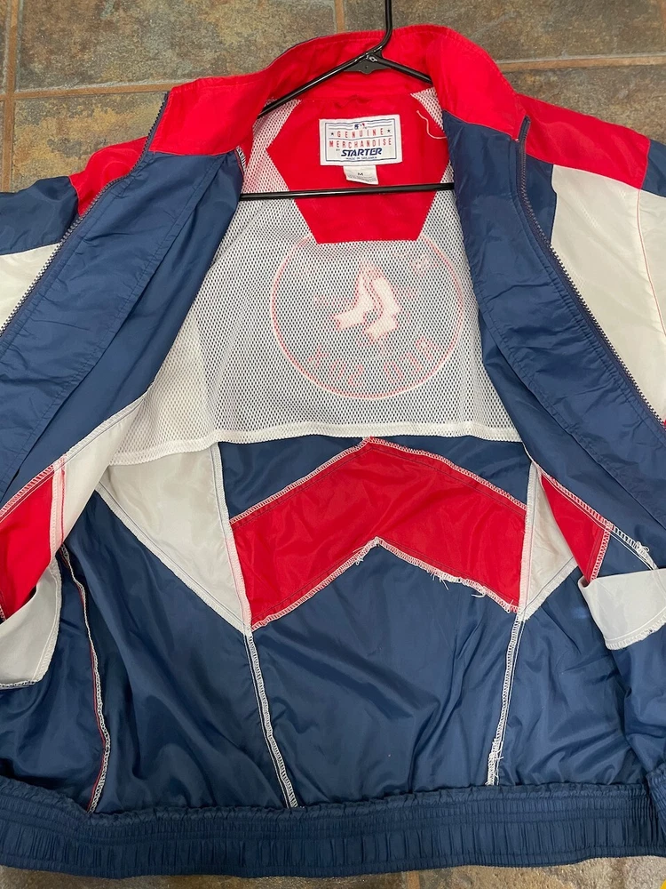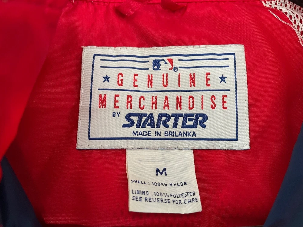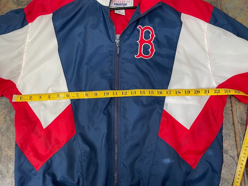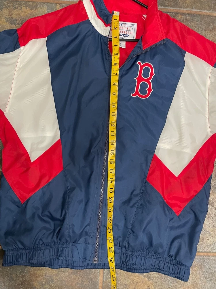 This is an excellent Starter Genuine Merchandise Boston Red Sox jacket. Lightweight windbreaker style in red, white, and blue. Embroidered logos front and back. Full zip. Excellent vintage condition. Very minor wear. Zipper works great. Always happy to combine shipping when possible. Thanks for looking!