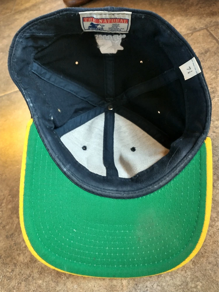 Vintage Starter brand Michigan Wolverines Fitted 7 1/8 Hat Cap in good condition, some minor discoloration on the bill that appears to be from the wool. 100% wool.