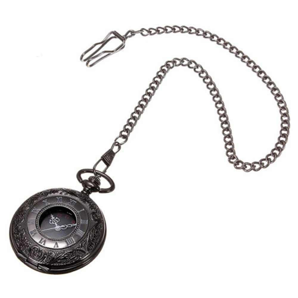 $ 11.46Vintage Steampunk Black Quartz Pocket Watch Necklace with Chain Gift