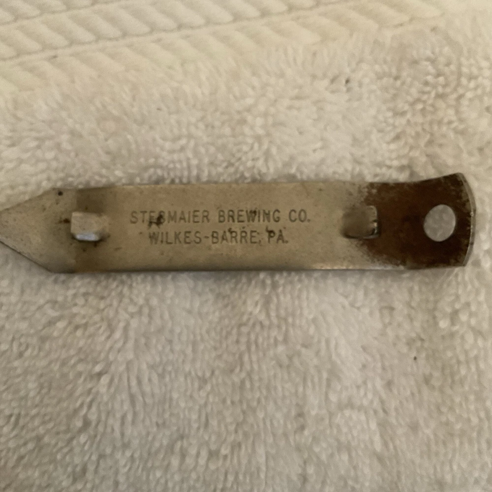 This vintage bottle opener is from Stegmaier Brewing Co. in Wilkes Barre, PA. It is a collectible breweriana item made in the United States. The opener likely features branding from the brewery and is a unique piece of Americana history related to beer culture.