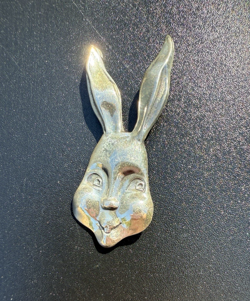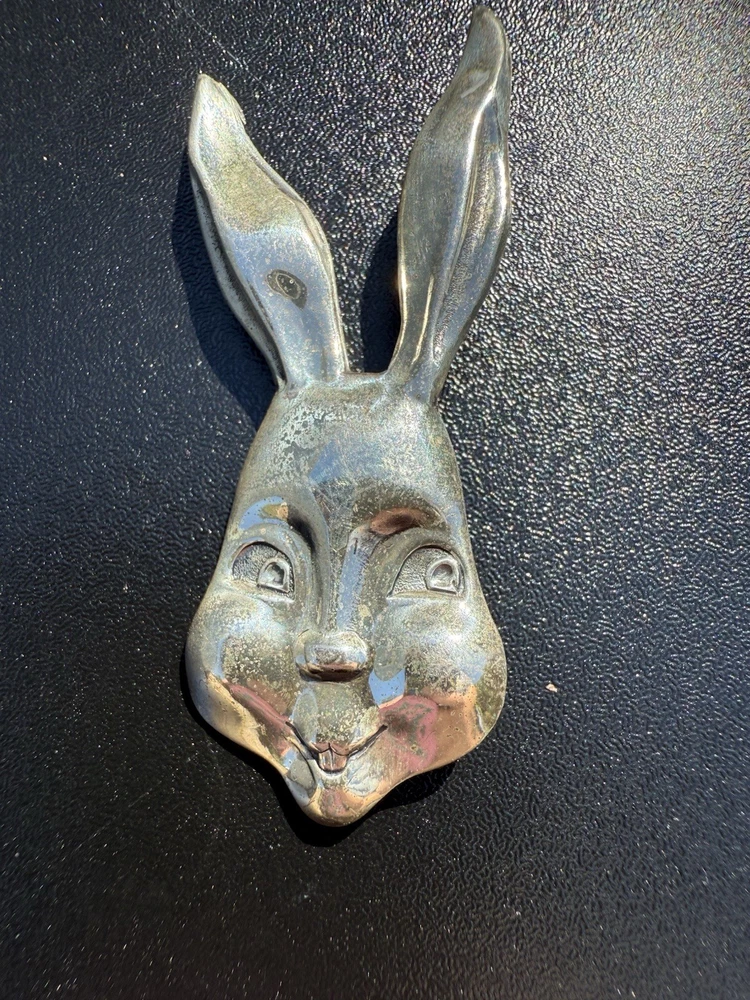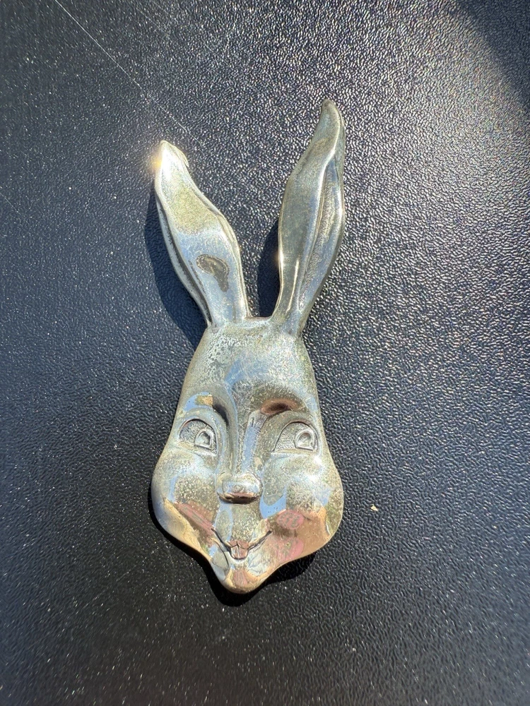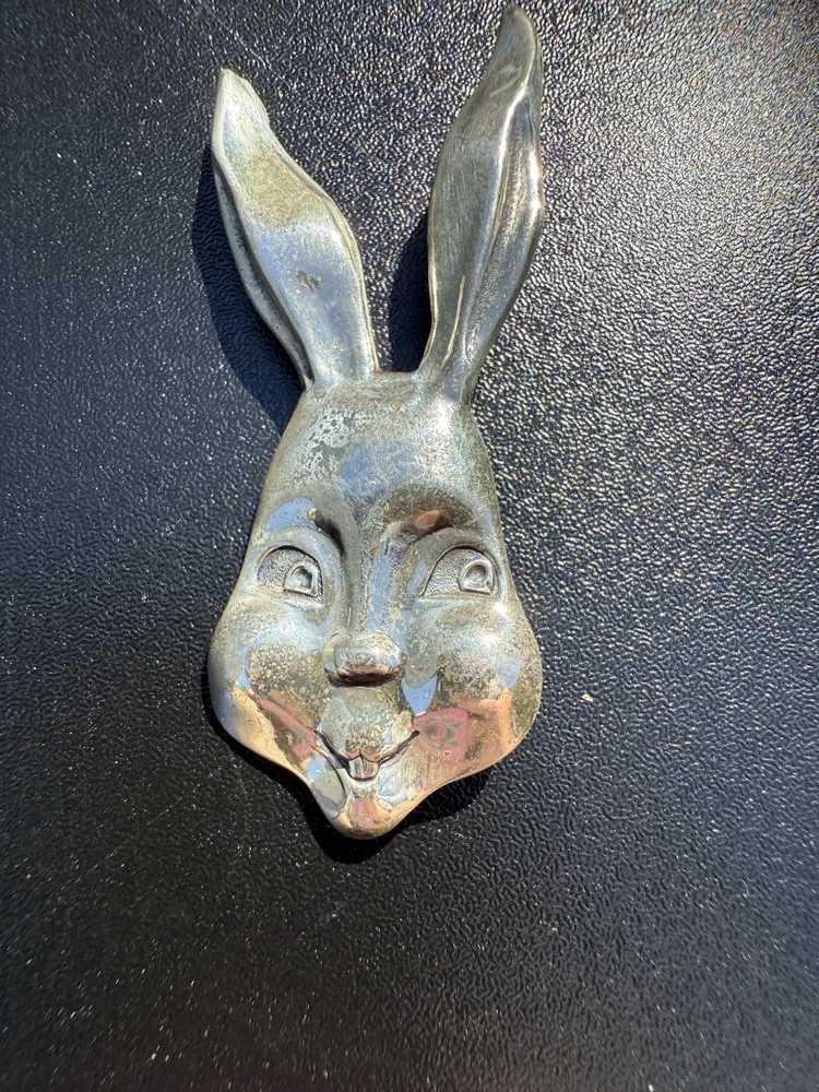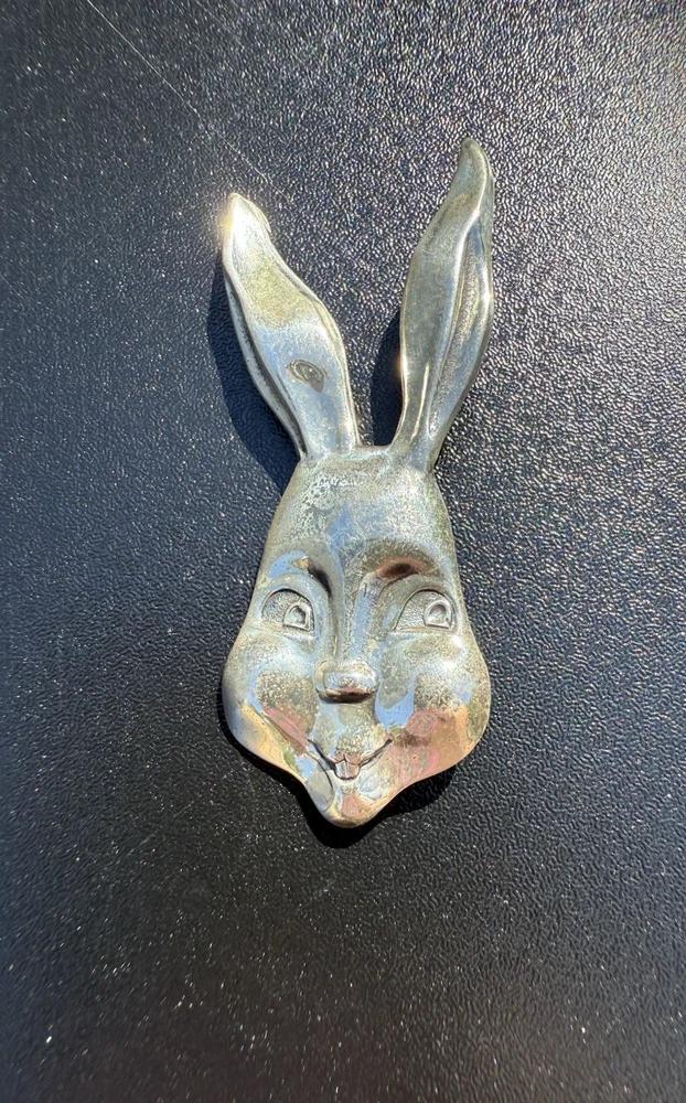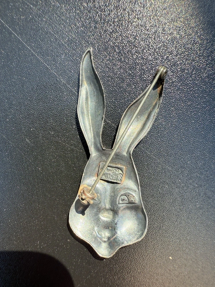 Vintage Sterling Lang Signed Smiling Rabbit Face Brooch Pin - Unique Creepy Charm