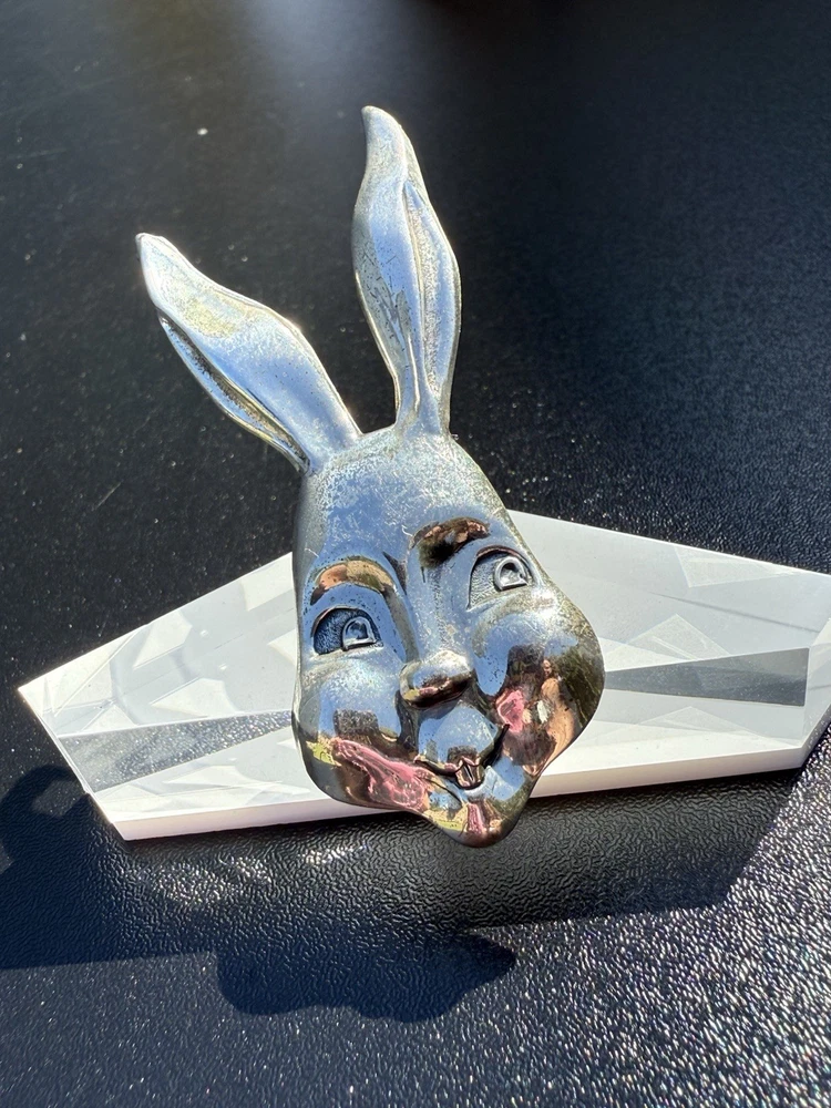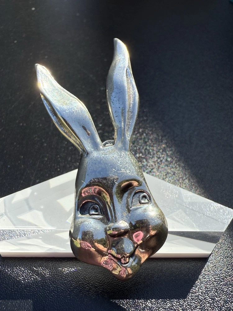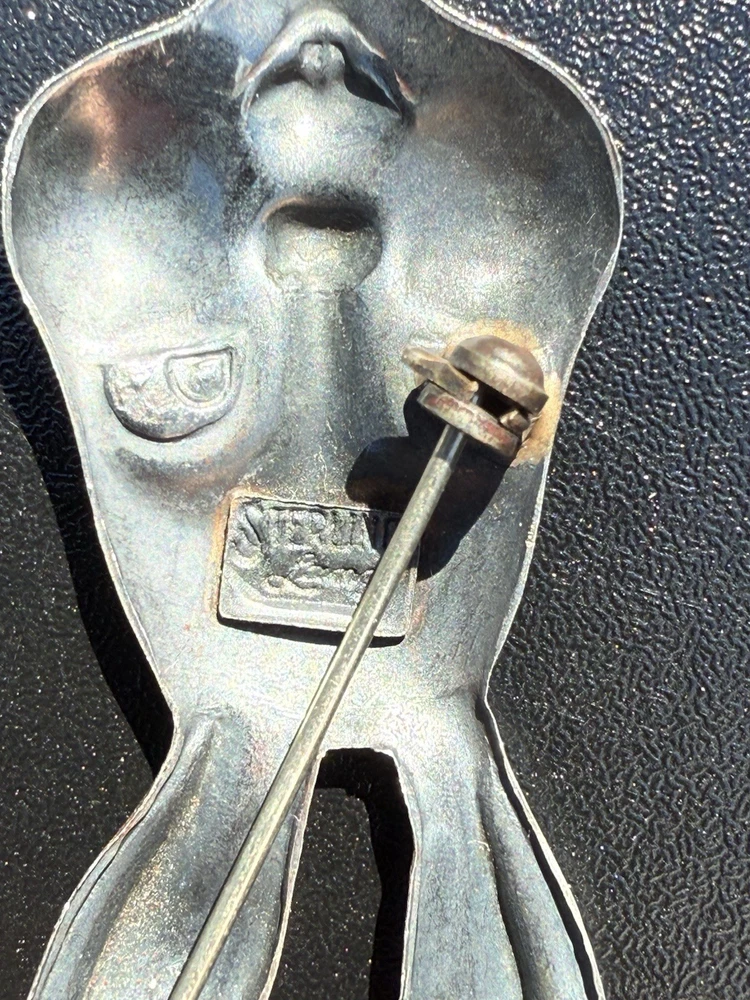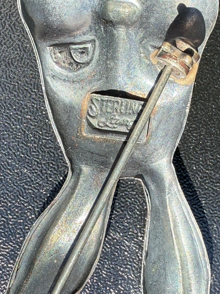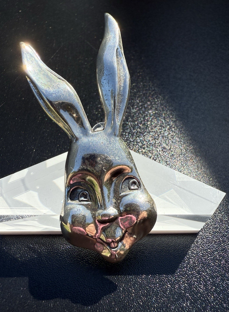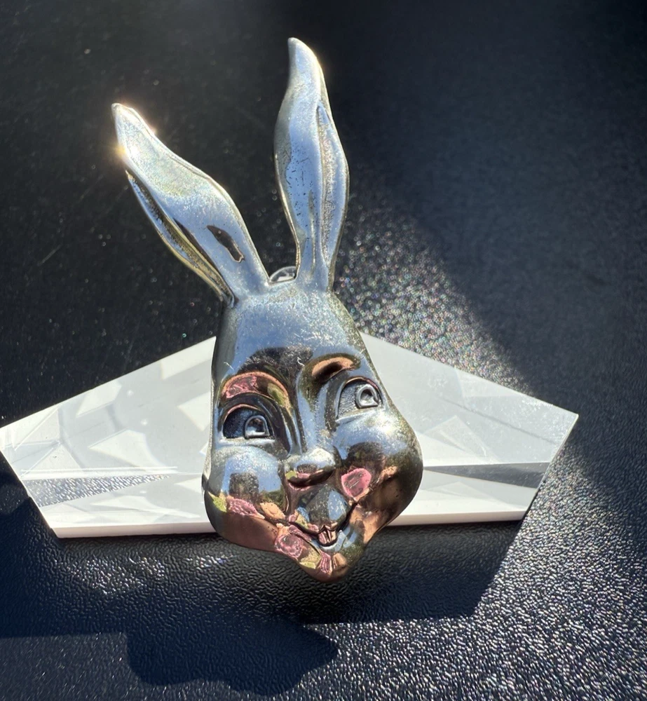 Vintage Sterling Lang Signed Smiling Rabbit Face Brooch Pin - Unique Creepy Charm