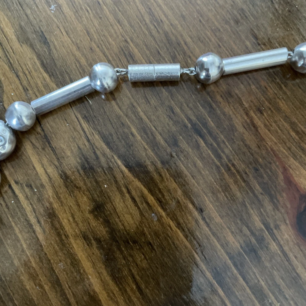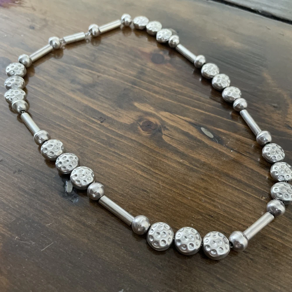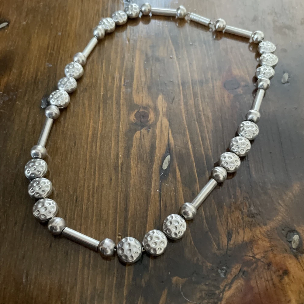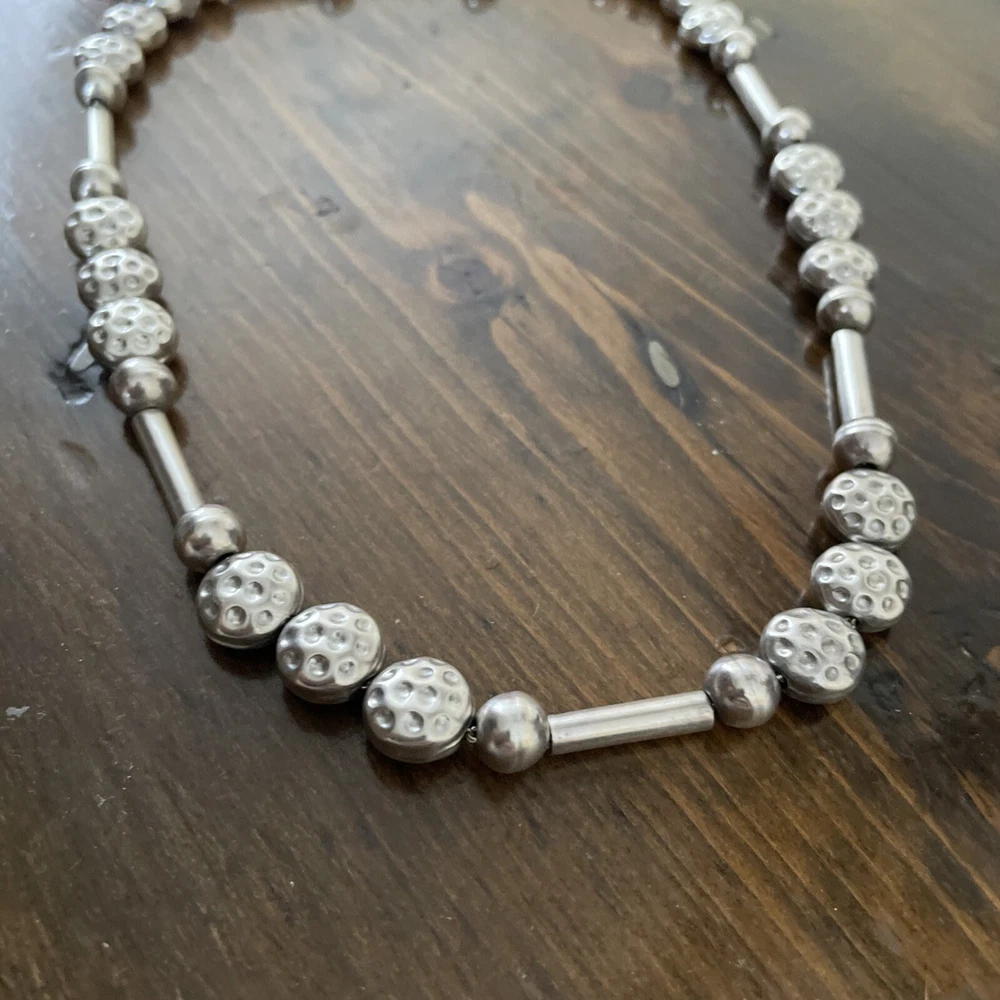 Vintage Sterling Silver 925 Beaded Chain Dimpled Cylinder unisex Necklace Y2K. Condition is Pre-owned. Shipped with USPS Ground Advantage.