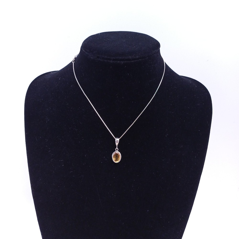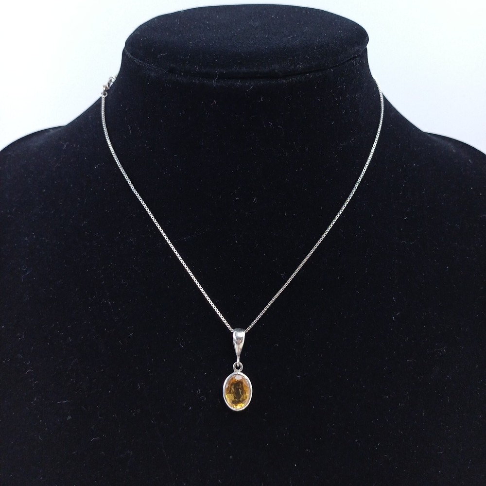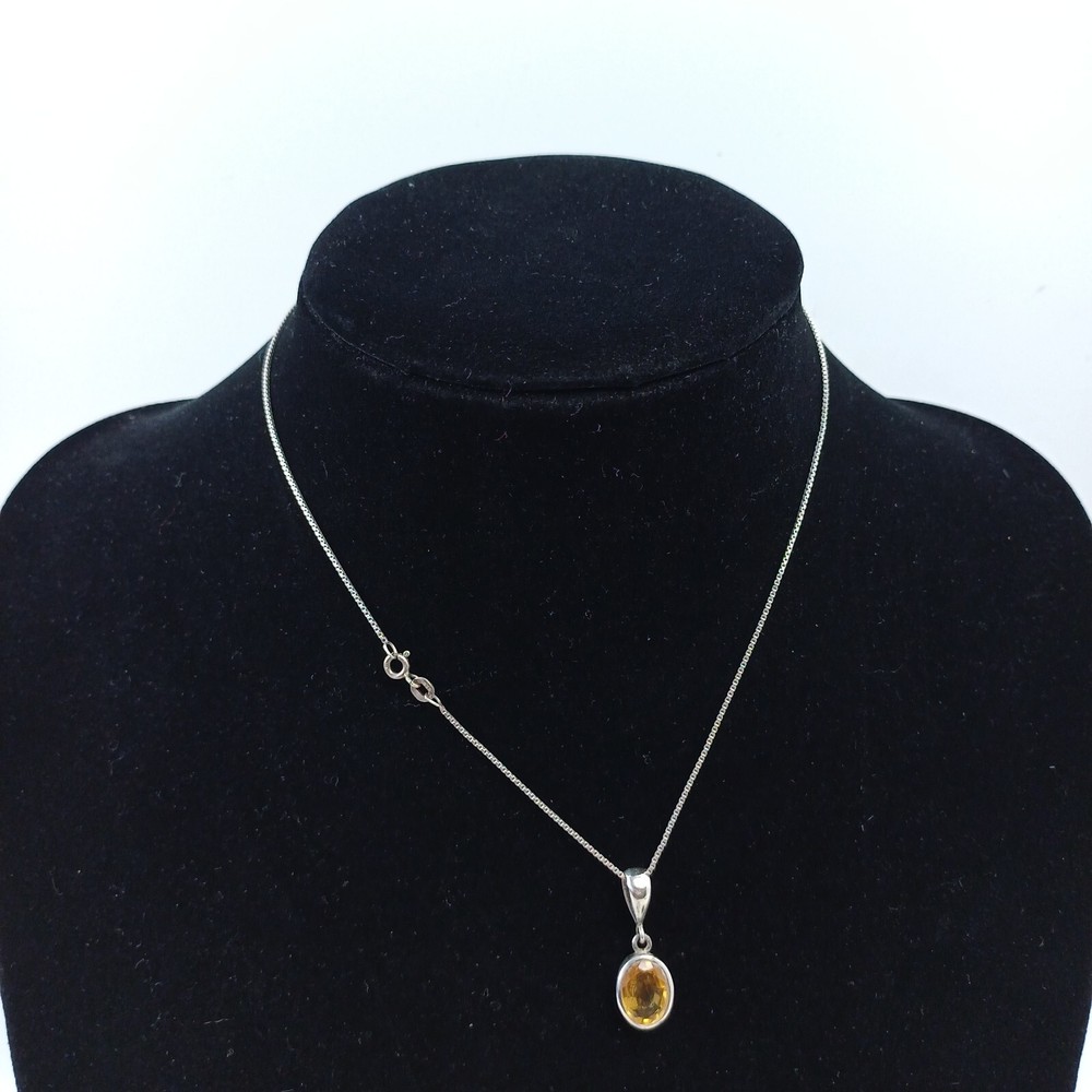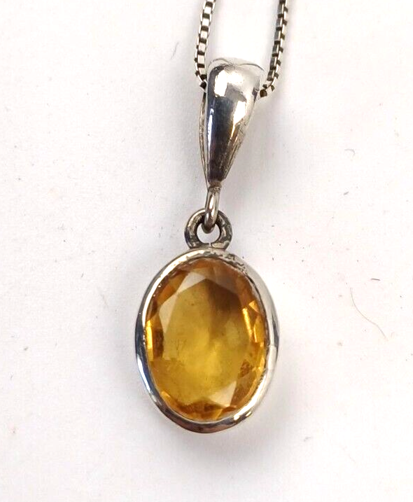 Vintage Sterling Silver Citrine Pendant Necklace .925
