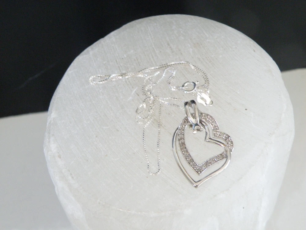 Absolutely stunning! The delicate double hearts catch the light beautifully, and the tiny diamonds add just the right sparkle. The 18" chain sits perfectly, making it easy to layer or wear alone. Love that it’s genuine sterling silver—lightweight yet durable. The craftsmanship is flawless, and the vintage touch gives it timeless elegance. A must-have for anyone who loves dainty, meaningful jewelry. So happy with this purchase—it’s even prettier in person!