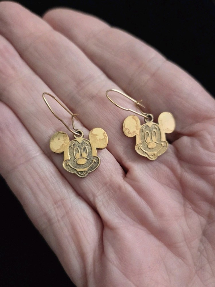 Vintage Sterling Silver MICKEY MOUSE Earrings Gold Vermeil Dangles DISNEY in beautiful vintage condition. They measure approximately 3/4" in diameter.