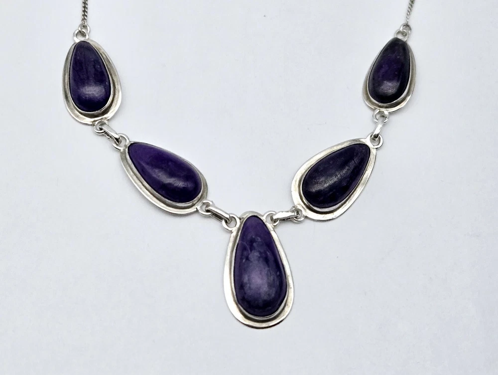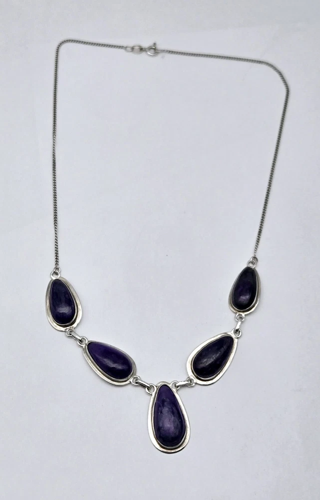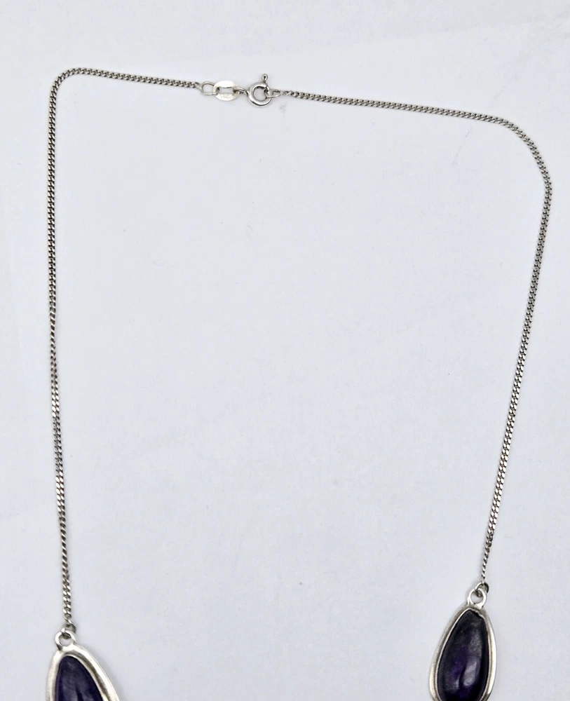 Color:PurpleCountry of Origin:UnknownType:PendantNecklace Length:16 inBase Metal:Sterling SilverMain Stone Color:PurpleMain Stone:Tiffany StoneMetal:Sterling SilverSigned:YesMetal Purity:925Country/Region of Manufacture:UnknownTheme:BeautySecondary Stone:TourmalineMaterial:StoneBrand:UnbrandedMain Stone Shape:PearStyle:Chain