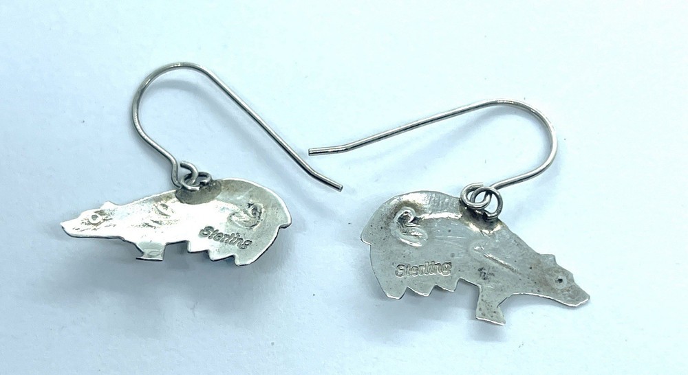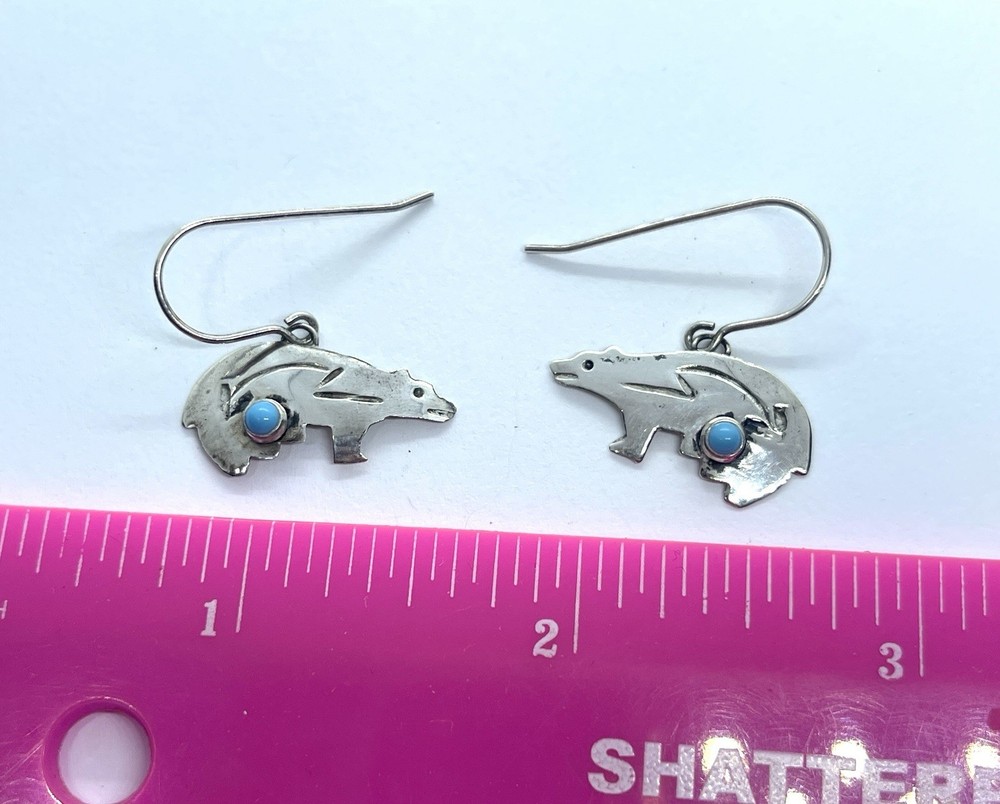 Vintage Sterling Silver & Turquoise Native American Bear Earrings Signed on the Backsides Tested Sterling Silver Be sure to see Photos Thanks for Looking