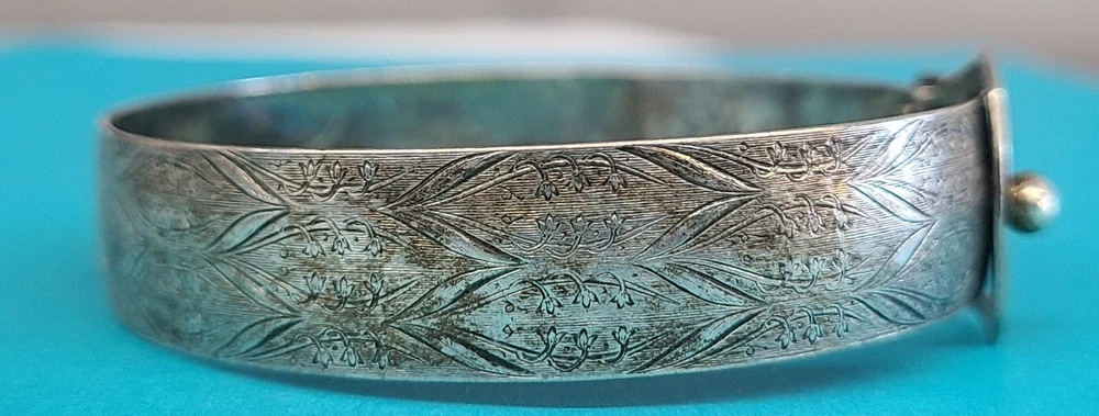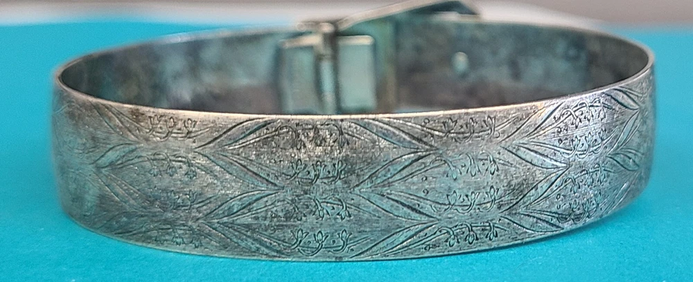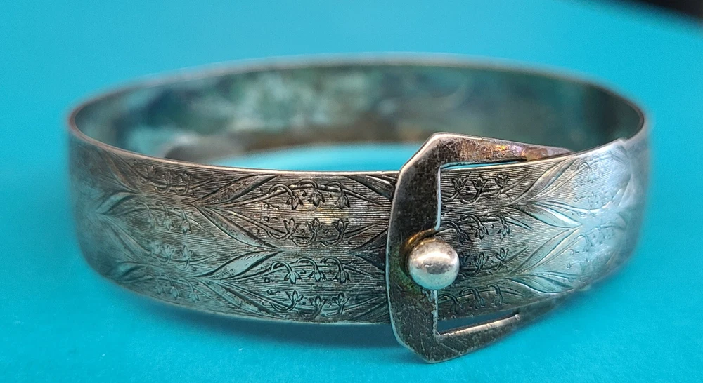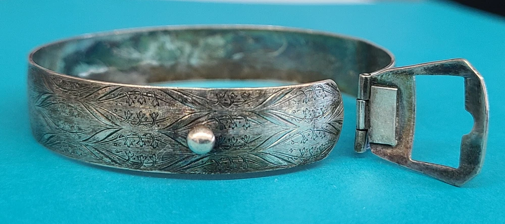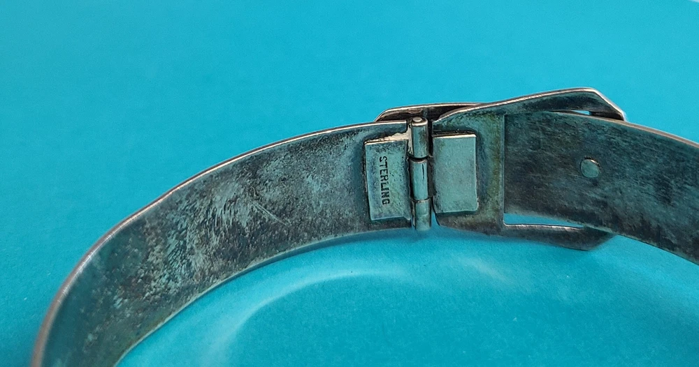 Vintage Sterling Silver Unique Belt Design Cuff / Bangle Bracelet 8" Circumference 0.5" Width of Bracelet Band Total Weight: 17.8 Grams In great visual and wearable condition! See all pictures for most details concerning time toning/use wear/etc Will appear best with a fresh polishing/cleaning You will receive the pictured items in the exact condition pictured, as we do not clean or alter any of the pieces we list Please ask questions