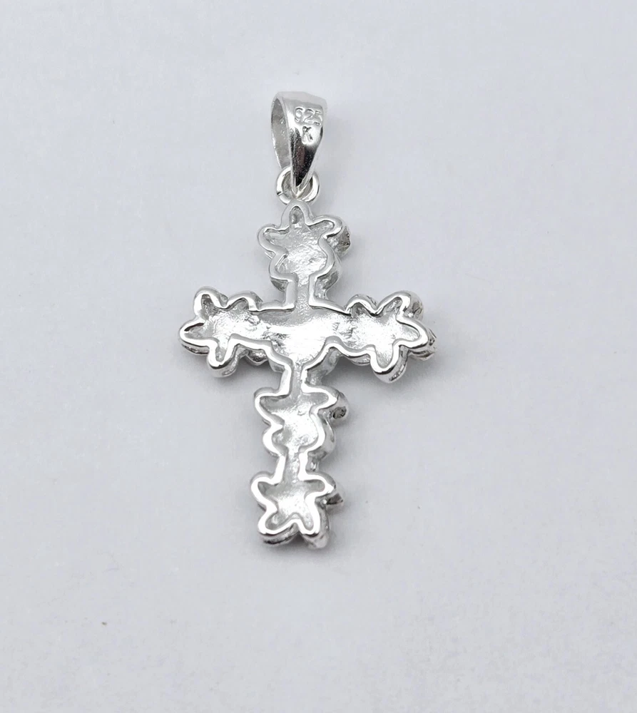 Vintage Sterling Silver White Plumeria Enamel Religious CROSS Drop Pendant - 2.0g