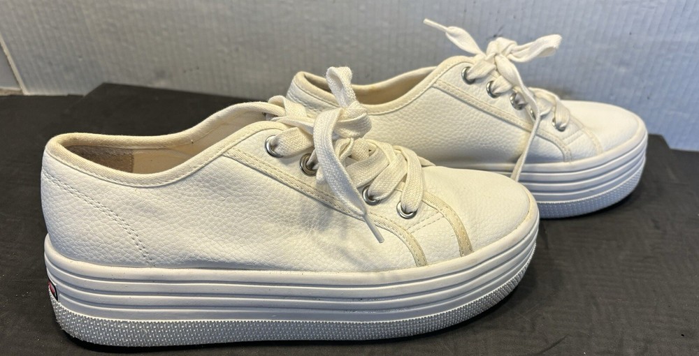 Steve Madden Women's Leather Flooked Sneakers Lace Up Shoes Size 6.5 M, White