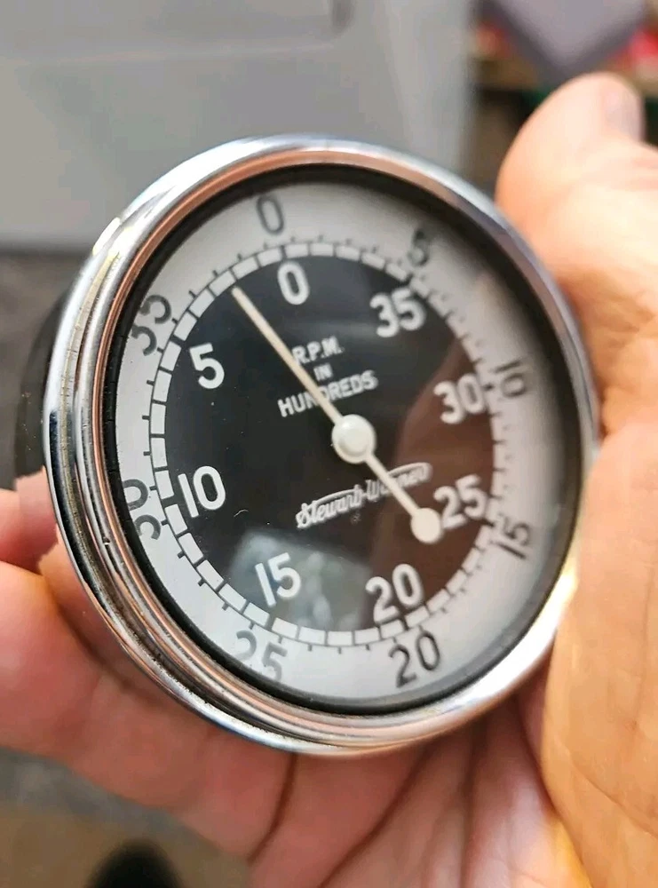 Unit of Measure:rpmBrand:Stewart WarnerCountry/Region of Manufacture:United StatesNeedle Color:WHITEType:TachometerVintage Part:YesColor:MulticolorStyle:VintageMaterial:MetalDisplay Type:Analog
