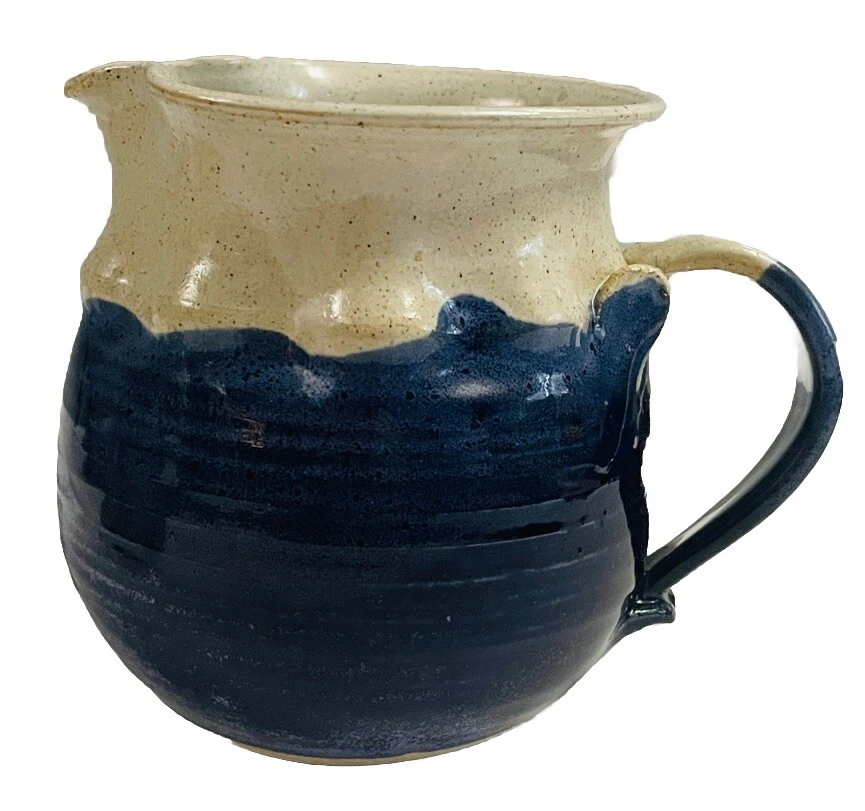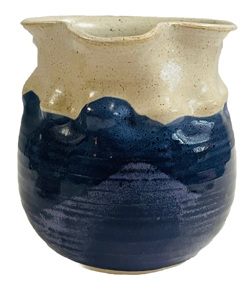 This unique vase is a wonderful addition to any collection. Handmade by Joyce Brown in Pittsboro, North Carolina in 1983, it features a beautiful all-over pattern of stones. The vase stands at 5 inches tall and has a glossy finish. H- 5 inches Dimension opening- 4 3/4 inches 6 1/2 across spout to handle Very good condition. Minimal sign of wear and tear. No chips, cracks or discoloration. Please see all attached photos and zoom in for imperfection. Free shipping with bundle of care.