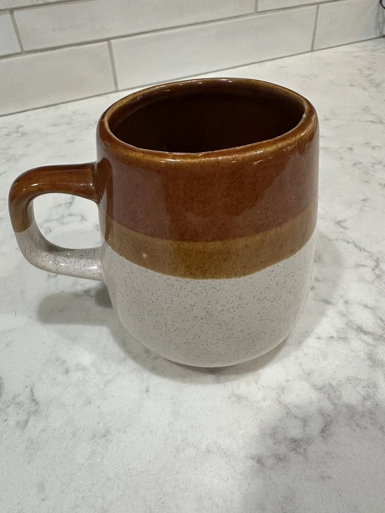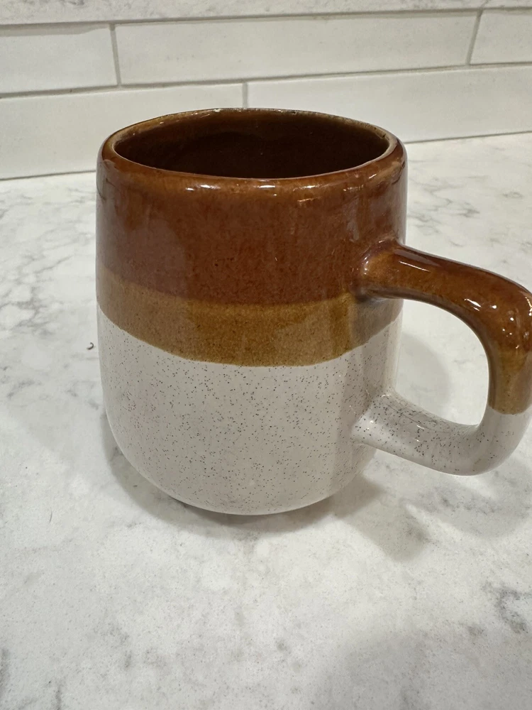 Add a retro touch to your morning coffee or evening tea with this vintage stoneware mug. The tricolor brown stripe and speckled dip glaze design is perfect for mid-century modern decor. This round mug has a capacity of 8 fl oz and measures 10cm in height and 8cm in width, weighing 250g. Crafted in Taiwan, this mug, perfect for serving one person. The browns and cream colors make this mug a great addition to any kitchen or dining room. Whether you're a collector of vintage items or just enjoy the style of retro design, this mug is sure to impress.