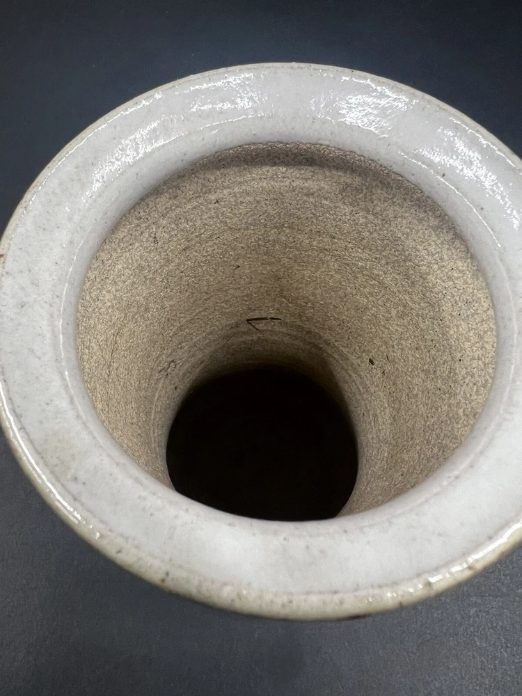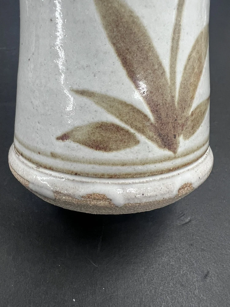 Add a touch of vintage charm to your home decor with this lovely stoneware vase. The salt glaze finish and floral pattern make it a beautiful addition to any room. Perfect for displaying fresh or dried flowers, this 6.5" vase is a one-of-a-kind piece of pottery that is both unique and timeless. Whether you're a collector of vintage pottery or simply looking for a striking vase to display your favorite blooms, this unmarked vase is a must-have.