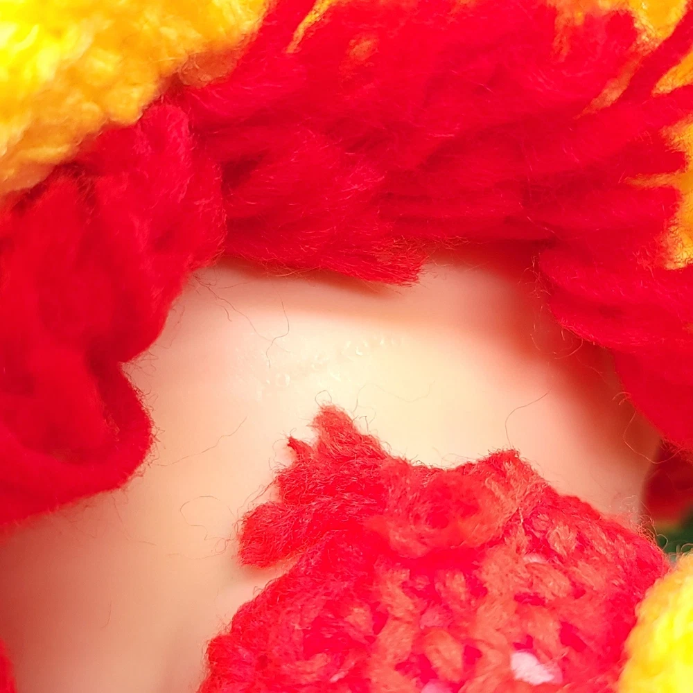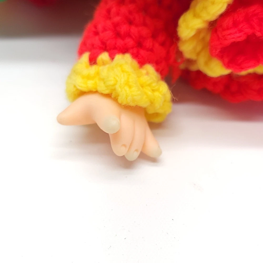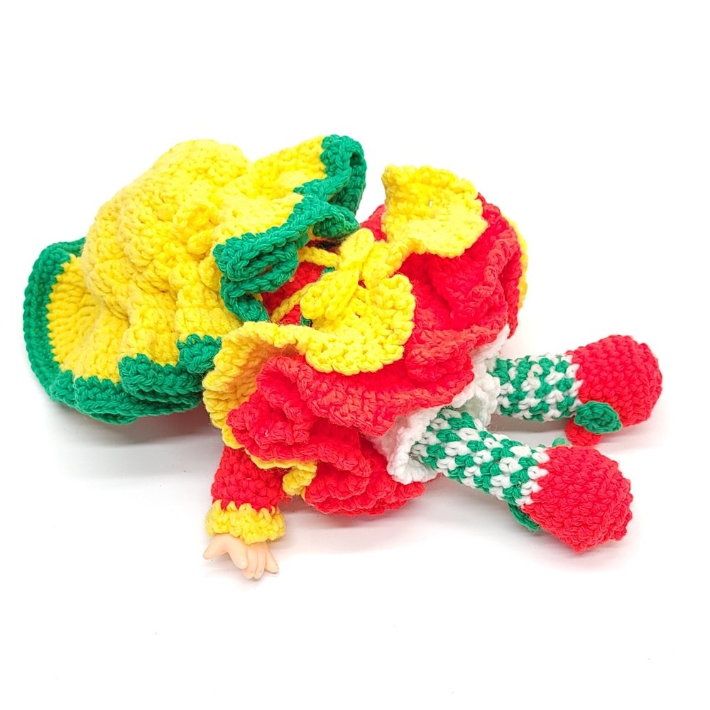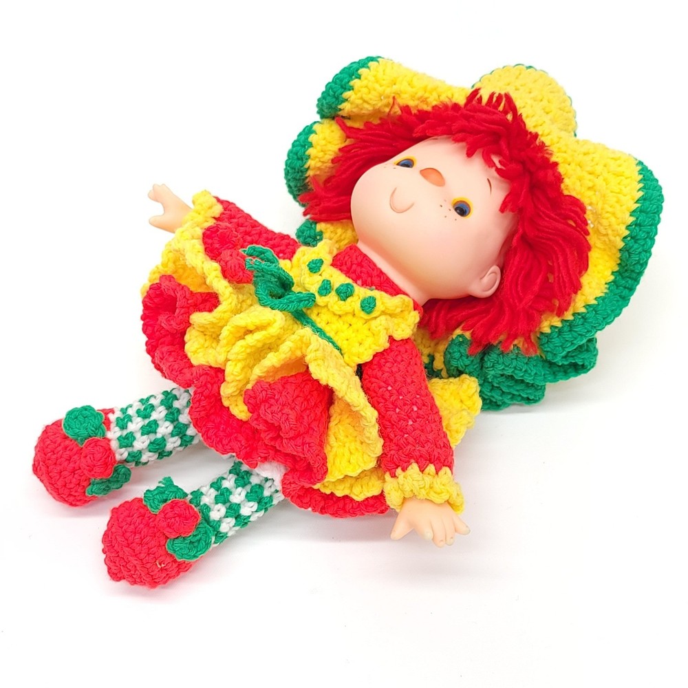 Vintage Strawberry Crochet Doll Bright and full of cheer! Features removable clothes, rotating appendages. Expert level crochet work! Doll is roughly 12" tall. Thanks for stopping in! If you have any questions please feel free to ask.