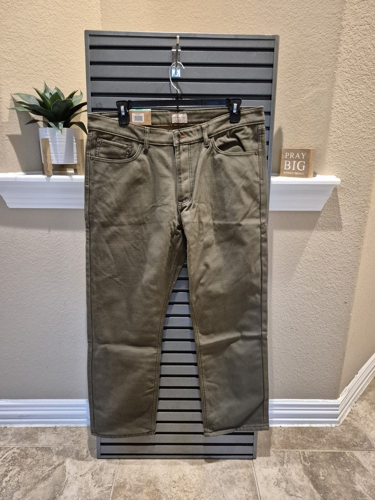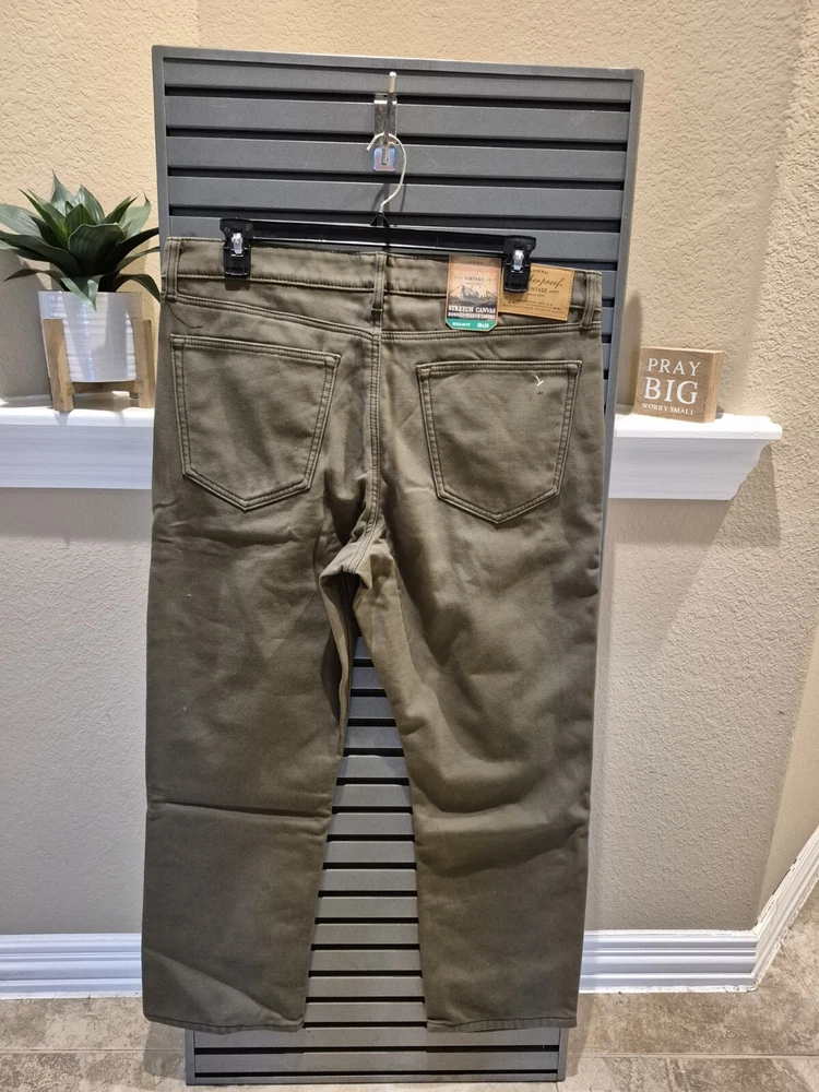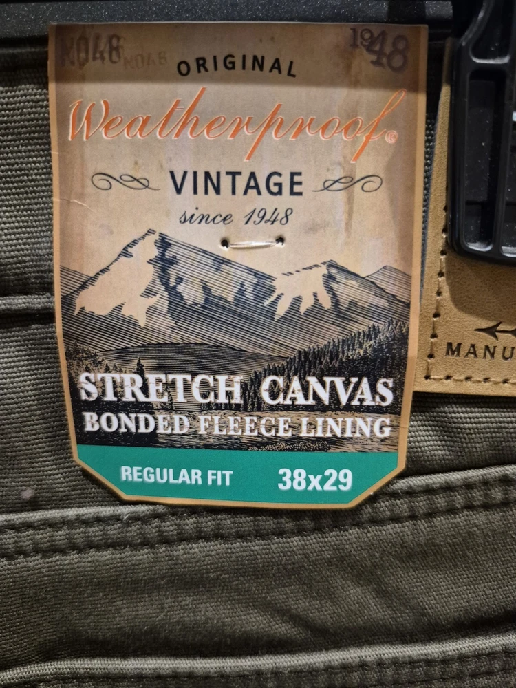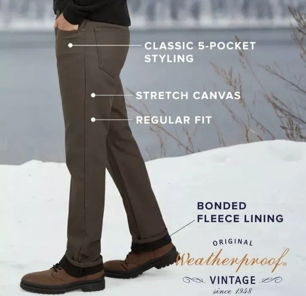 Crafted for comfort and durability, these Weatherproof Vintage Men's Stretch Canvas Regular Fit Fleece-Lined Pants offer the perfect blend of style and practicality. In a versatile olive branch green, these pants feature a fleece lining for added warmth, making them ideal for transitional weather. The stretch canvas fabric ensures a comfortable fit that moves with you, while the regular size 38x29 inseam provides a tailored look for everyday wear. Designed with functionality in mind, these pants come from a brand renowned for its quality garments. They boast a classic fleece linen style that's easy to pair with your favorite shirts and shoes. Whether you're heading to the office or enjoying a weekend outing, these pants offer the sophistication and comfort you need for any occasion.