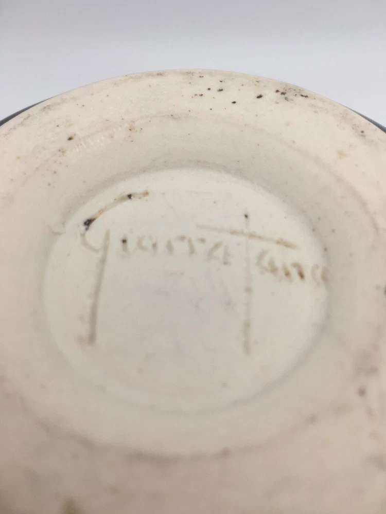 Vintage Studio Art Pottery Ceramic Matte Bowl Hand Thrown Artist Signed North Carolina original pottery Colors are black (on 3/4 near bottom) brown, blue, beige (top and inside) "sea sand" color An intricately designed seashell on each side Bottom signed by artist ~ Gianna ? with a T in last name - can't make out No chips or cracks. Wonderful condition Pictures are of the exact item you will receive. Zoom in for details. Message me with any questions. All sales final. Carefully packed and shipped Thank you for shopping with Daisy! Here's a Link to MY STORE for more great vintage, eclectic collectibles and estate treasures: https://www.ebay.com/str/daisysdishes