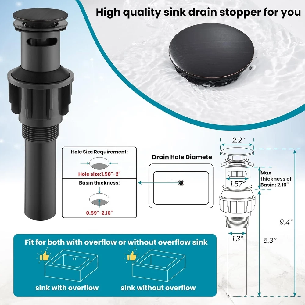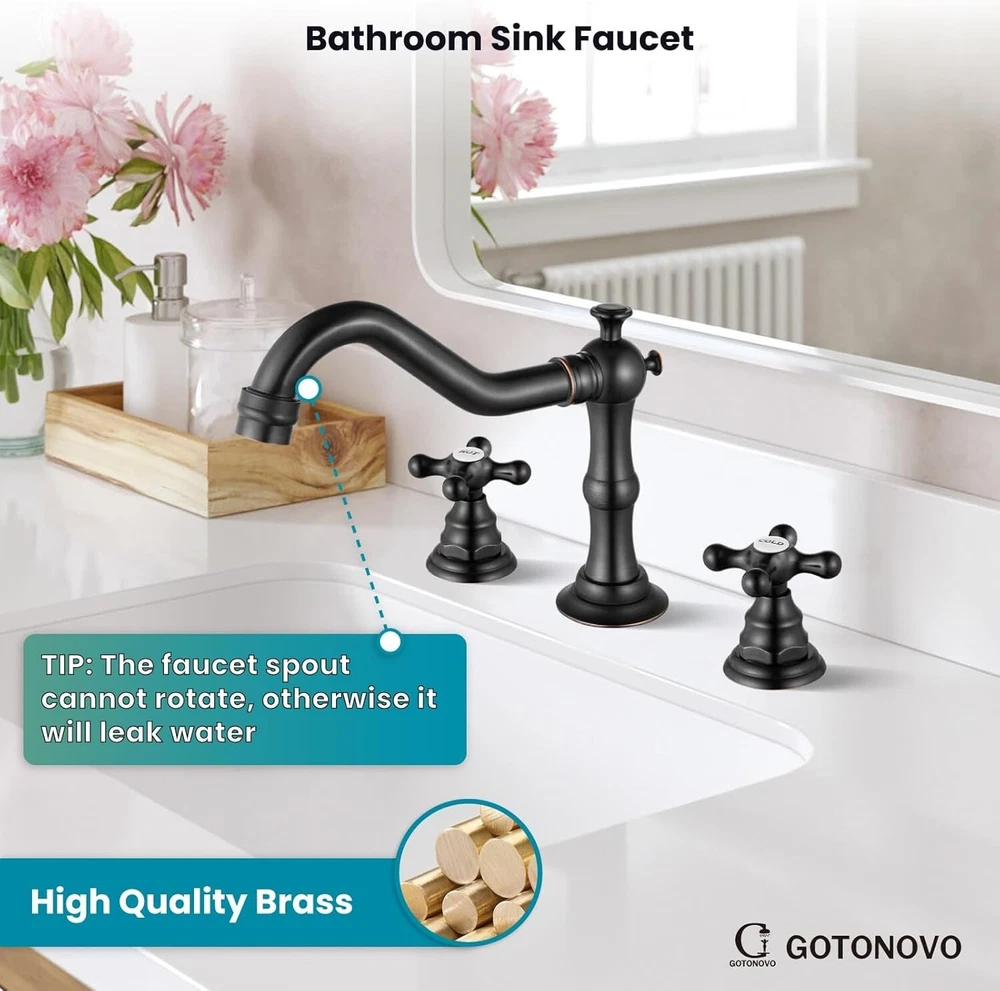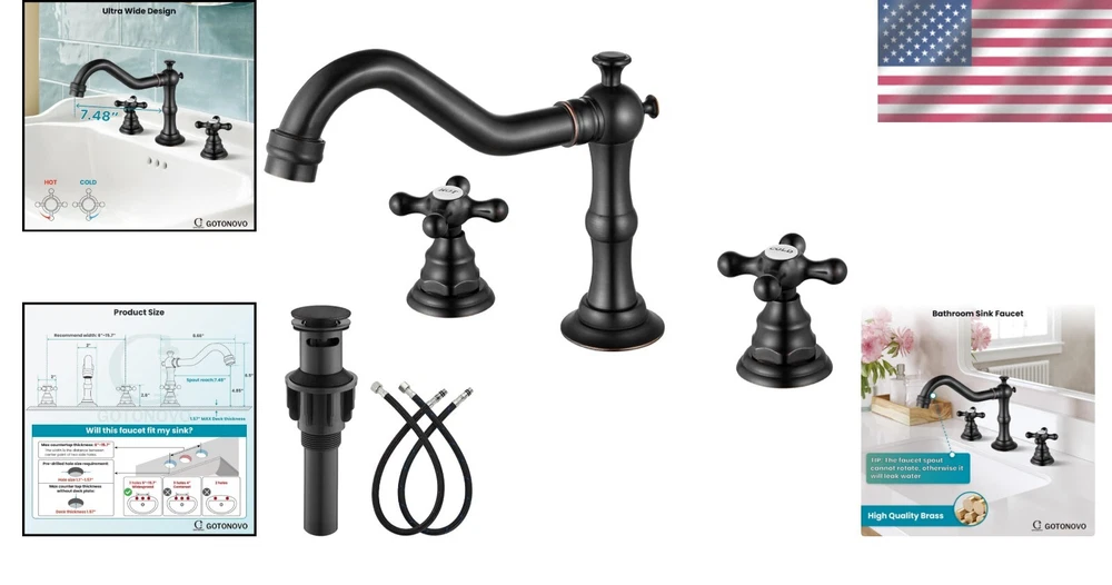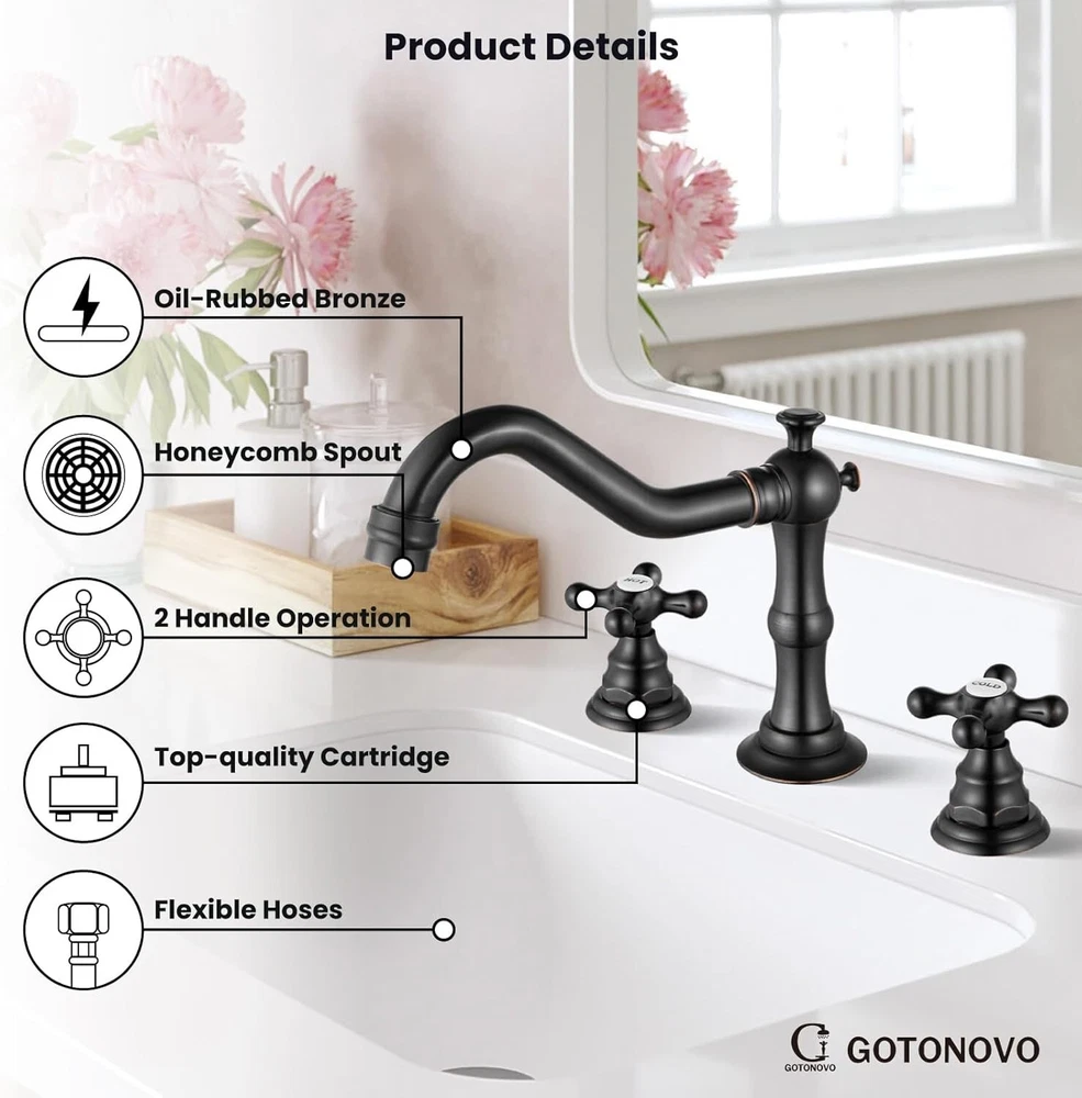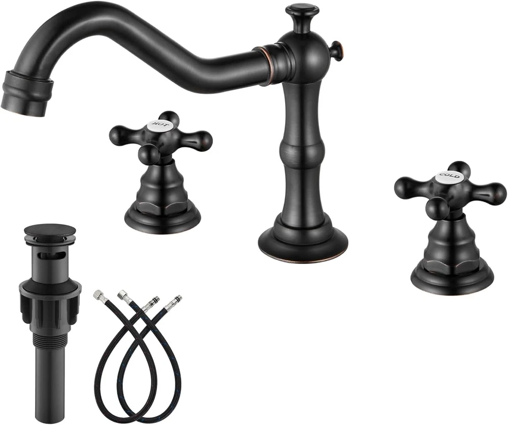 Product Dimensions: 15.75 X 11.81 X 3.15 Inches gtin13: Does Not Apply Is Electric: No Features: Water Conservation, Pop Up Drain Hole Count: 1 Units Finish: Oil-Rubbed Suitable For: Bathroom Sink Item Weight: 4.7 Mounting Type: Deck Mount Assembly Required: No Included Components: Drain, Handle, Instruction Manual Special Feature: Pop Up Drain Installation Type: Widespread Maximum Flow Rate: 1.18 Gallons Per Minute Hose Length: 15 Centimeters Series Id: Bathroom Sink Faucet Number of Faucet Handles: 2 Room: Bathroom Color: Oil Rubbed Bronze Brand: Unbranded Spout Height: 4.85 Inches Recommended Uses For Product: Bathroom Faucet Mounting Type: Deck Mount Style: Traditional Handle Type: Knob Handle Material: Brass Number in Pack: 1 Number of Faucet Holes: 3 UPC: Does Not Apply Spout Design: Non-swivel Spout Speaker Cutout Diameter Or Length: 2.28 Inches Valve Type: Cartridge Valve Type: Bathroom Sink Faucet Number Of Handles: 2 Faucet Hole Spacing: 1.1"-1.57" Installation: Widespread Material: Brass Shape: Non-Swivel Spout Items Included: Pop Up Drain, Faucet Body, Hose, Instruction Manual Number Of Pieces: 1 Finish Type: Oil Rubbed