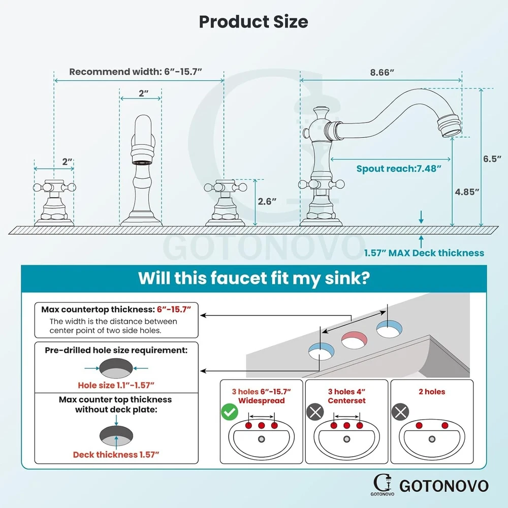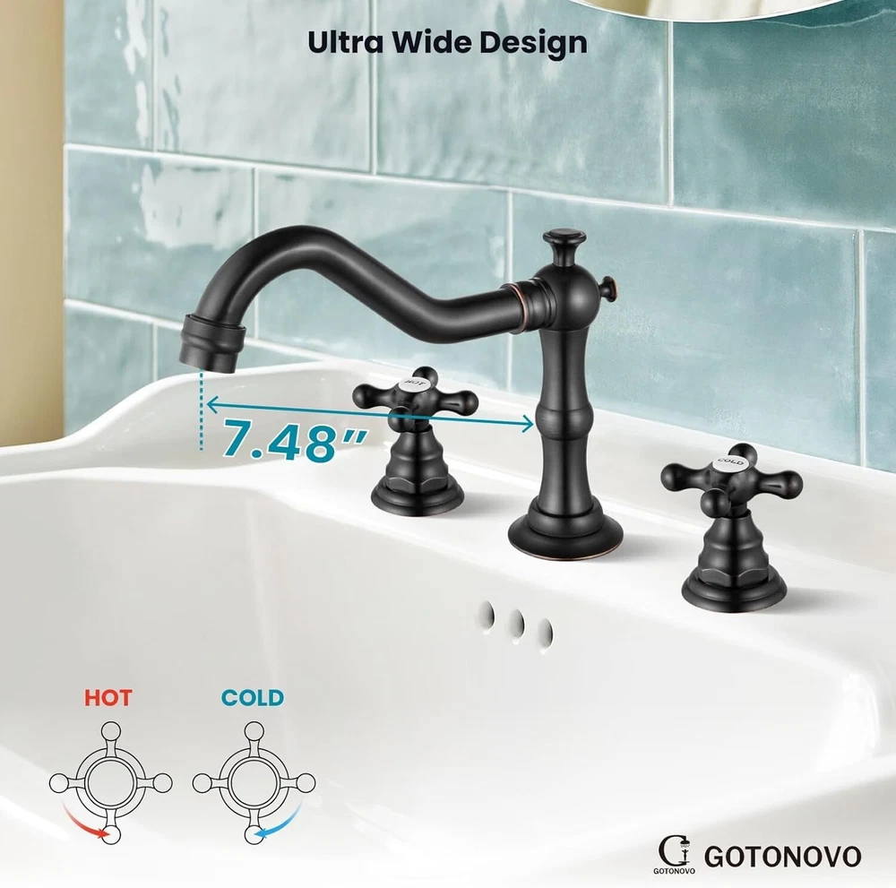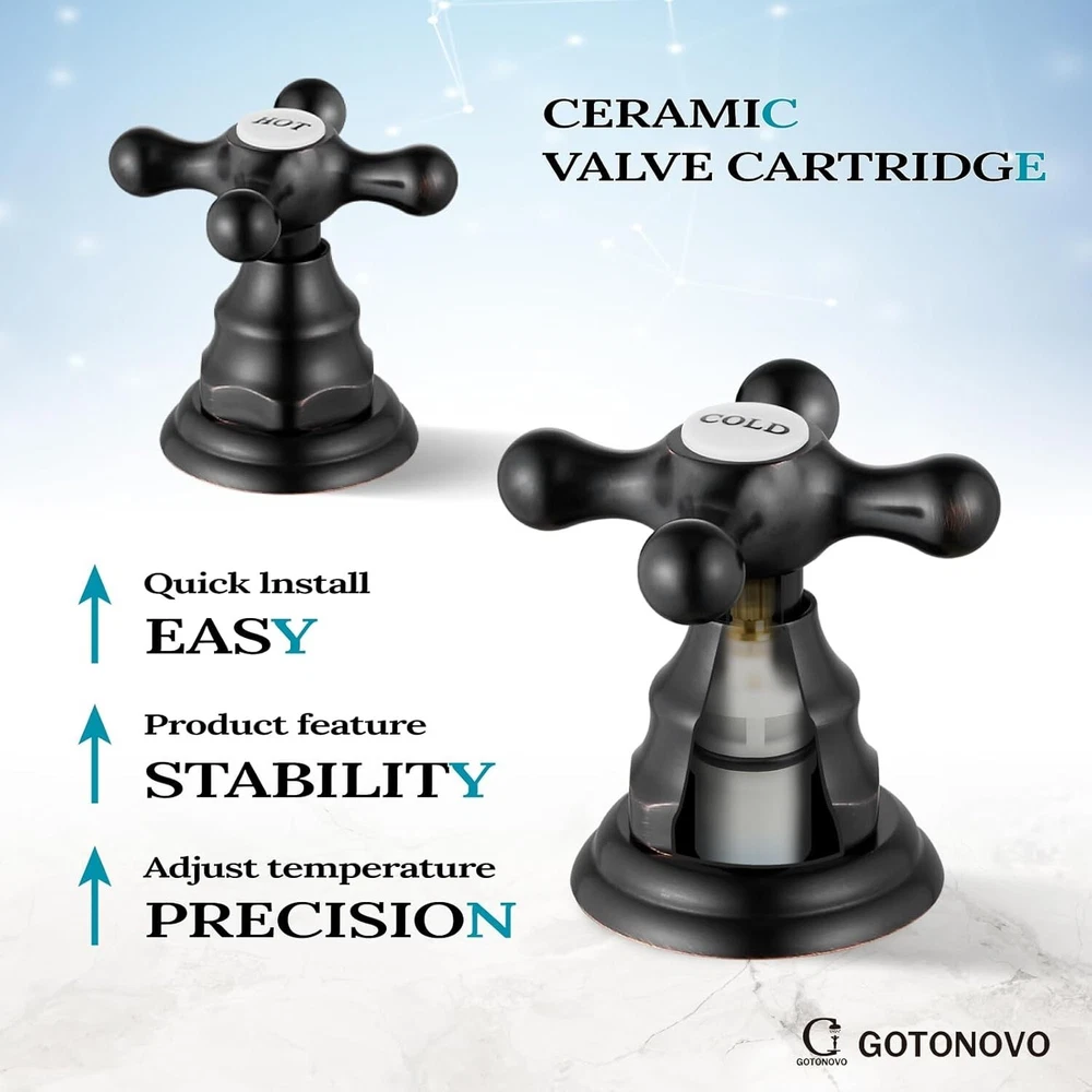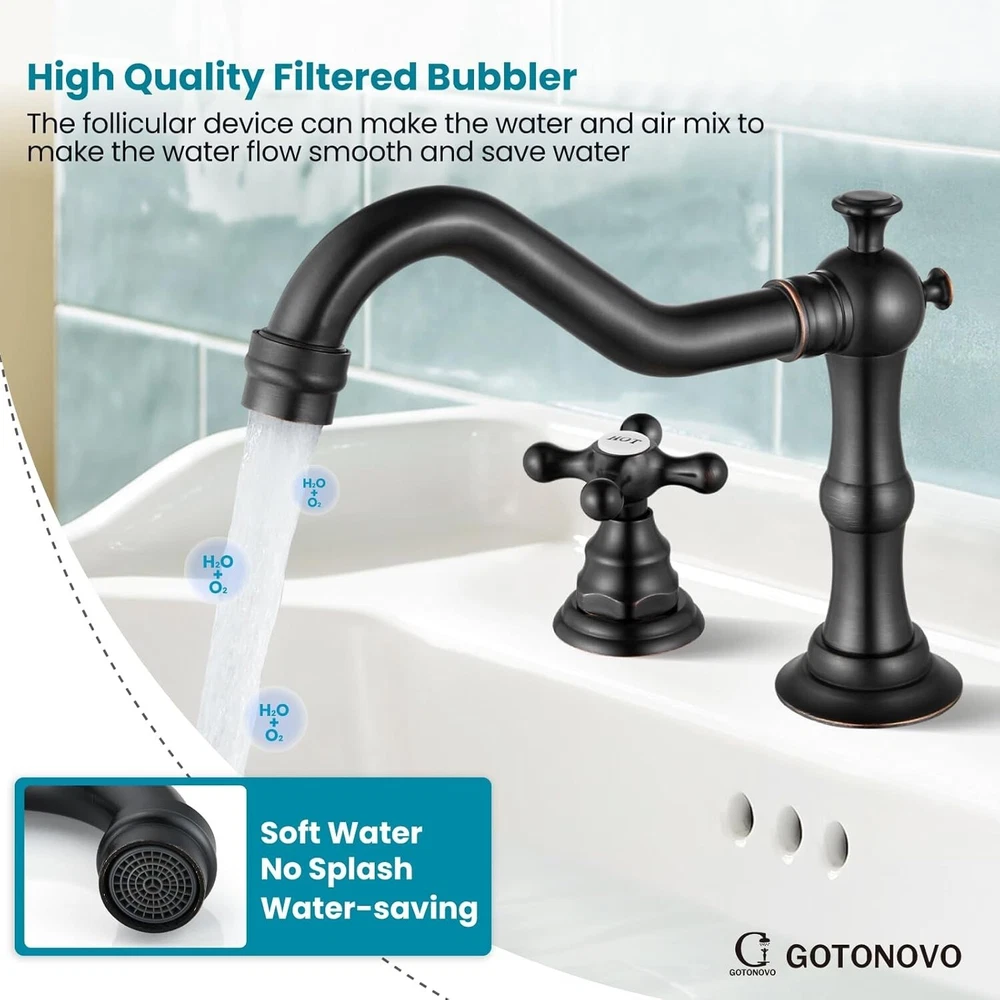 Product Dimensions: 15.75 X 11.81 X 3.15 Inches gtin13: Does Not Apply Is Electric: No Features: Water Conservation, Pop Up Drain Hole Count: 1 Units Finish: Oil-Rubbed Suitable For: Bathroom Sink Item Weight: 4.7 Mounting Type: Deck Mount Assembly Required: No Included Components: Drain, Handle, Instruction Manual Special Feature: Pop Up Drain Installation Type: Widespread Maximum Flow Rate: 1.18 Gallons Per Minute Hose Length: 15 Centimeters Series Id: Bathroom Sink Faucet Number of Faucet Handles: 2 Room: Bathroom Color: Oil Rubbed Bronze Brand: Unbranded Spout Height: 4.85 Inches Recommended Uses For Product: Bathroom Faucet Mounting Type: Deck Mount Style: Traditional Handle Type: Knob Handle Material: Brass Number in Pack: 1 Number of Faucet Holes: 3 UPC: Does Not Apply Spout Design: Non-swivel Spout Speaker Cutout Diameter Or Length: 2.28 Inches Valve Type: Cartridge Valve Type: Bathroom Sink Faucet Number Of Handles: 2 Faucet Hole Spacing: 1.1"-1.57" Installation: Widespread Material: Brass Shape: Non-Swivel Spout Items Included: Pop Up Drain, Faucet Body, Hose, Instruction Manual Number Of Pieces: 1 Finish Type: Oil Rubbed