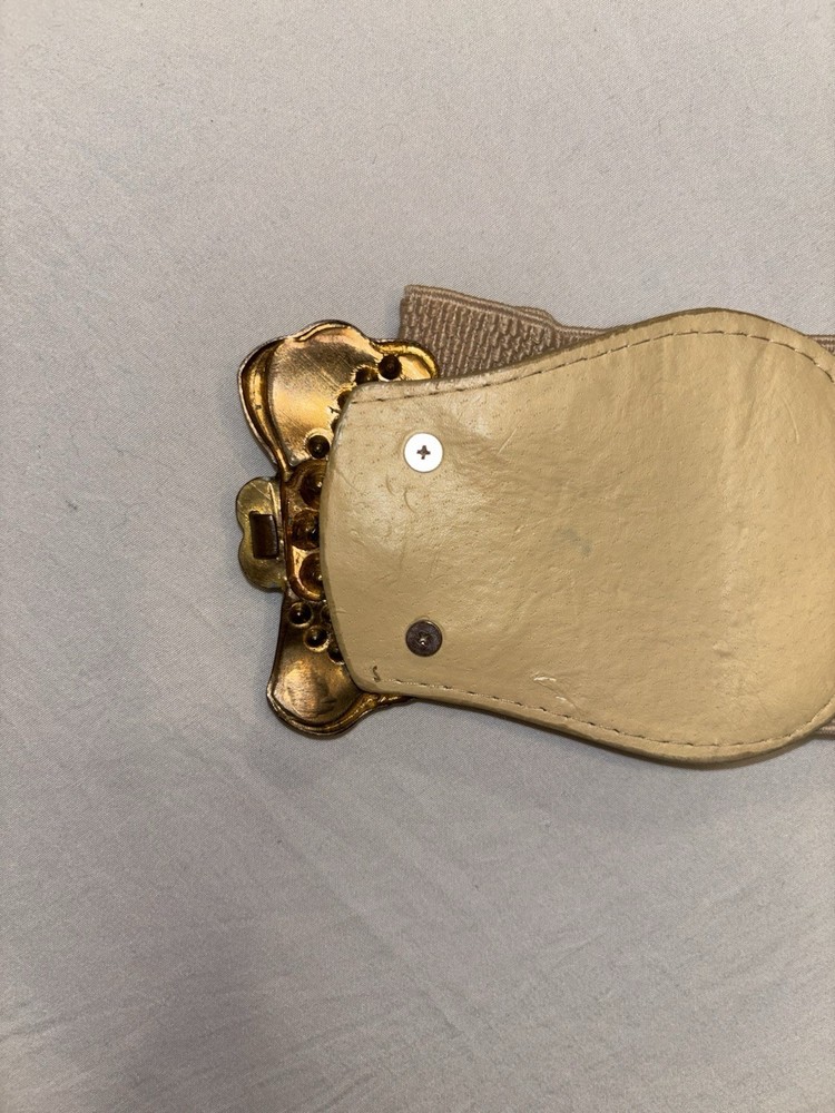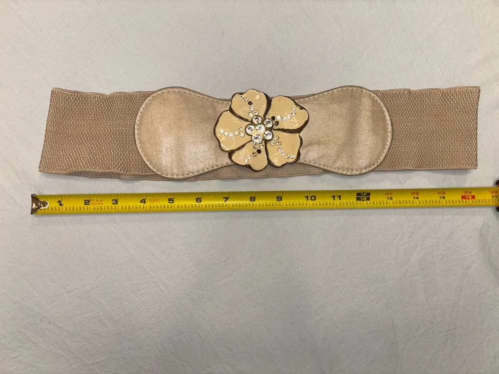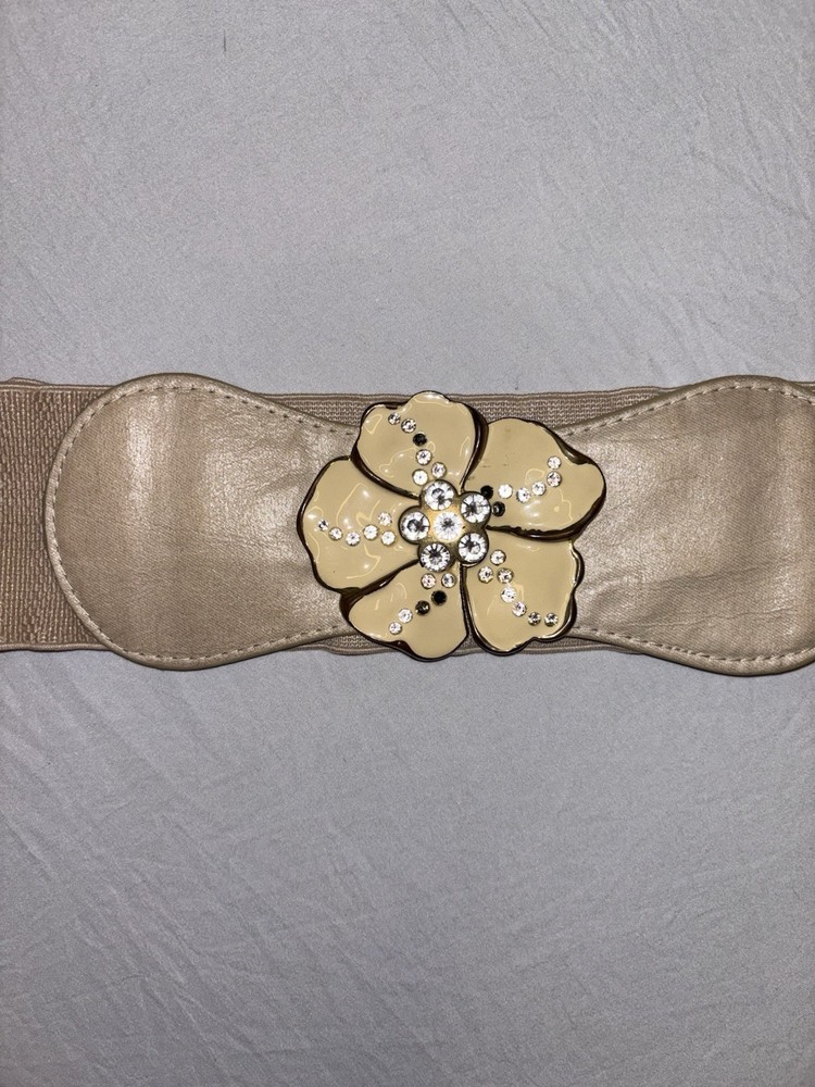 Vintage Style Beige Stretch Belt Flower Rhinestone Buckle Retro Y2K Boho