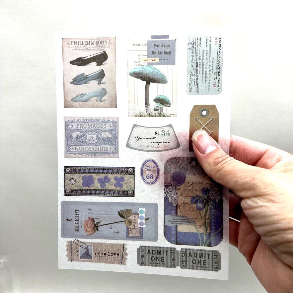 4 sheets. Vintage style Victorian garden. Blue hued. Washi paper stickers. Kiss cut stickers (close up photo #3.). No need to use scissors to cut out images. Washi paper has some transparency to it so a light or white background will work best with these. The sheets measure approx. 6 5/8 x 4 3/4 inches. I have more stickers, washi tape and paper for sale. I do combine shipping. Please put all the items you want to purchase in ONE cart and then pay. I will refund you the difference in shipping after shipping label is printed. Let me know if you have any questions through eBay messaging. Thank you for stopping by!