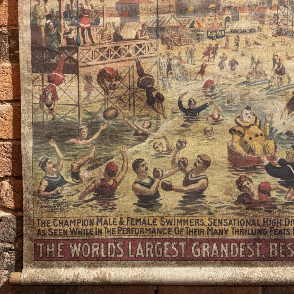 Circus Themed Fairground Wall Art Large canvas wall art that is in the stye of traditional fairground advertisement. Great statement pieces for large wall coverage! Please note that this is not an original piece, but a quality reproduction that makes for a great wall feature! Dimensions: Height: 81cm Width: 106cm Depth: 3cm Free UK delivery with ParcelForce. Please enquire for more details. *Please note that this is also listed on our own website, therefore this listing may end suddenly if sold through there*