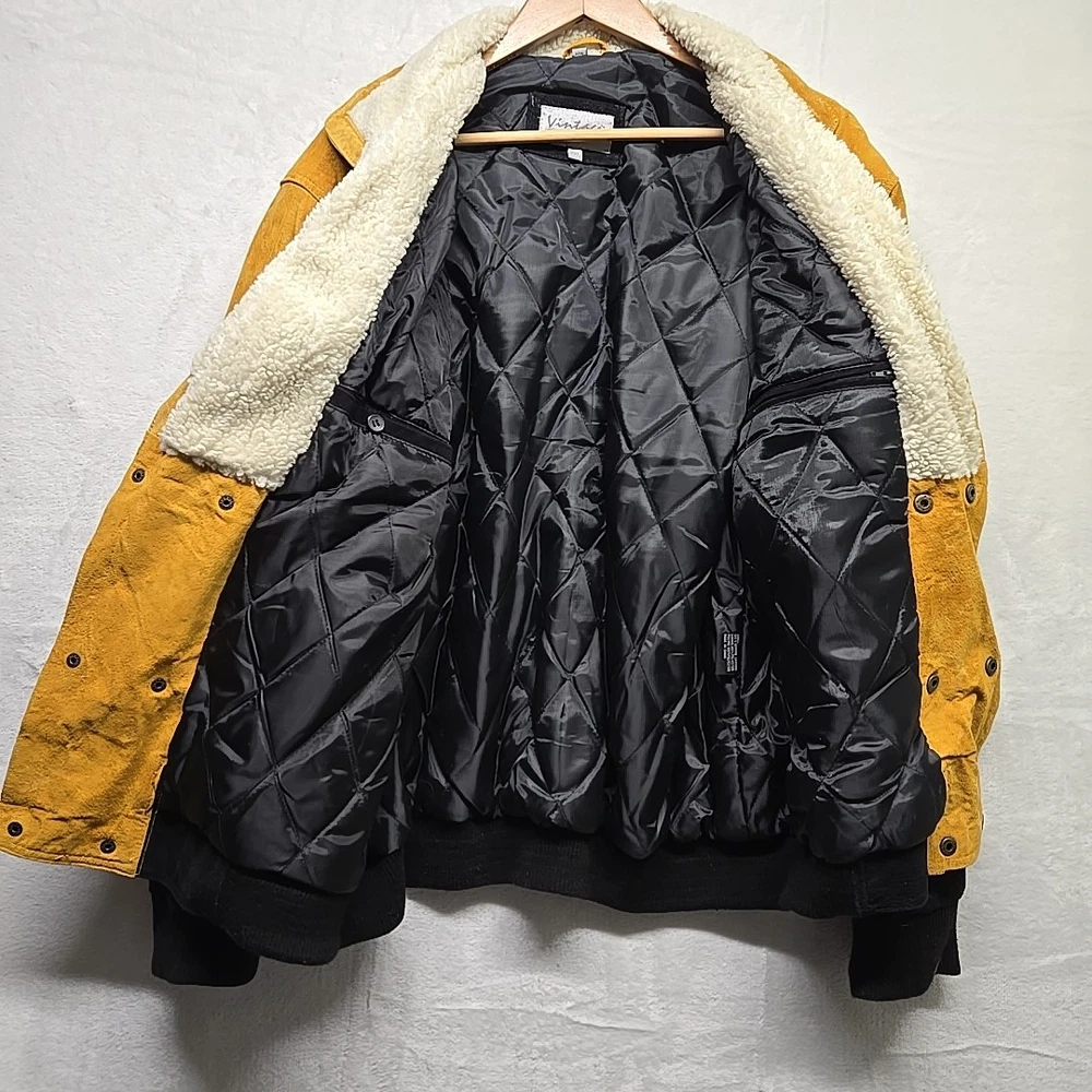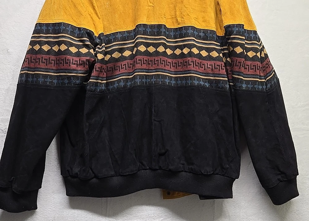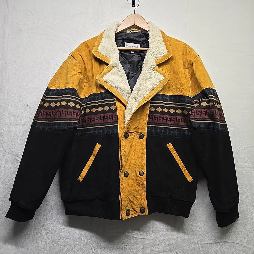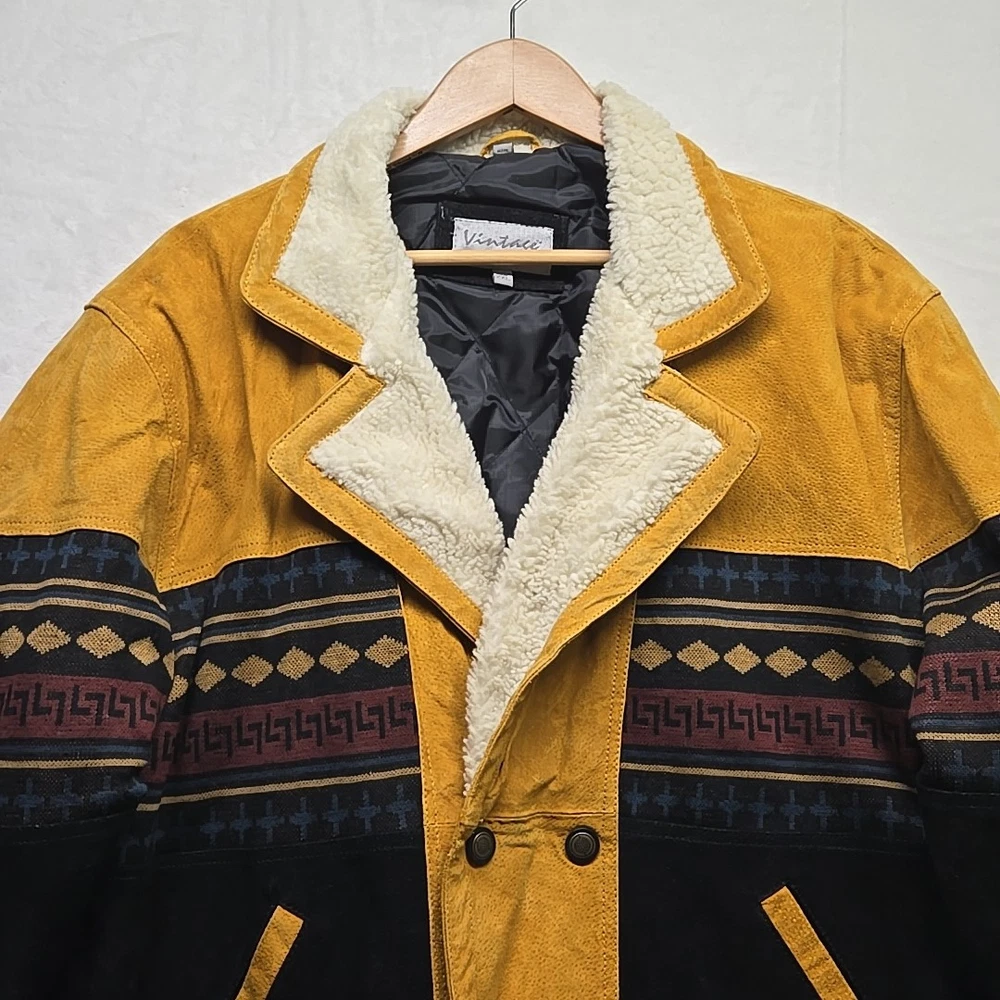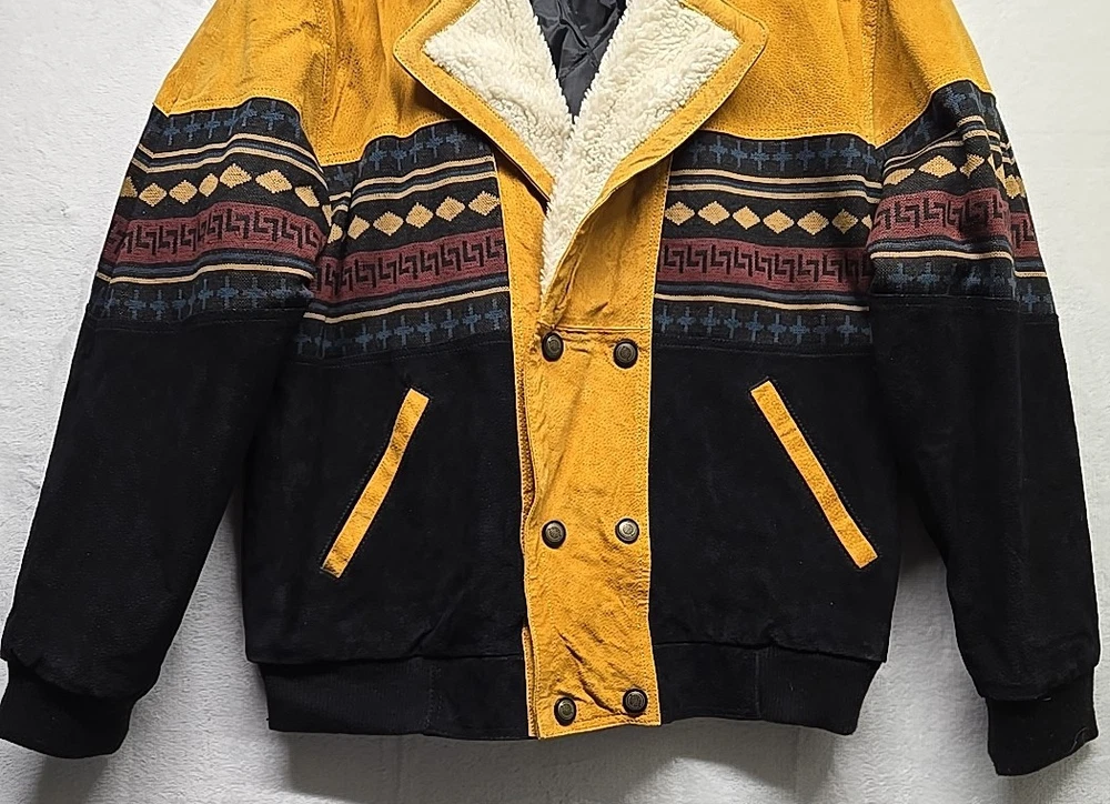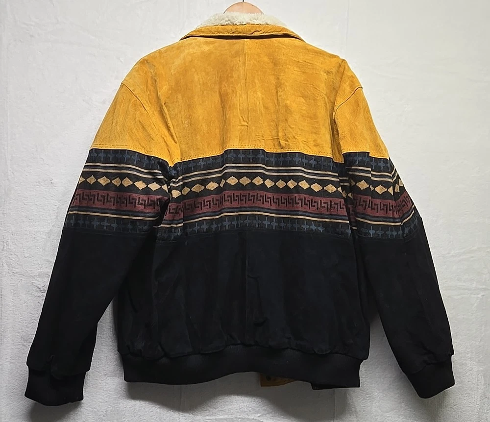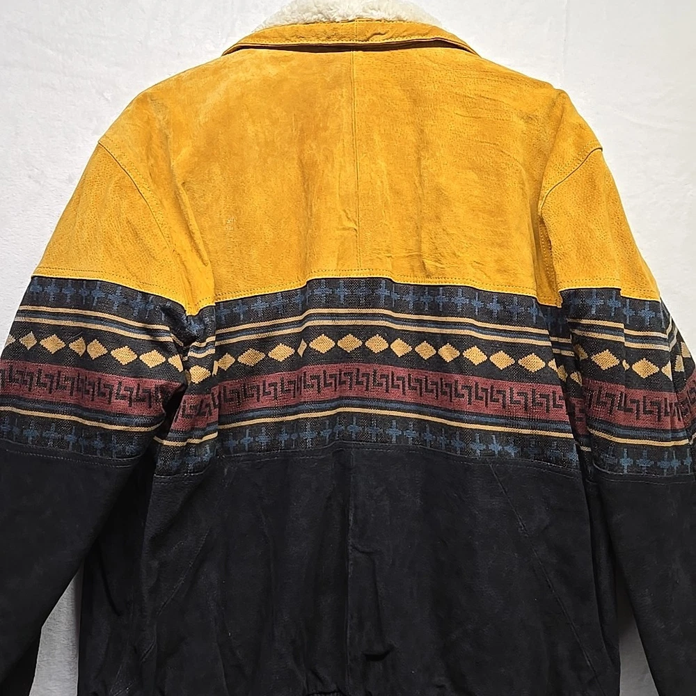 Vintage Suede Leather Bomber Jacket Mens XXL Aztec Tribal Western Quilted Sherpa