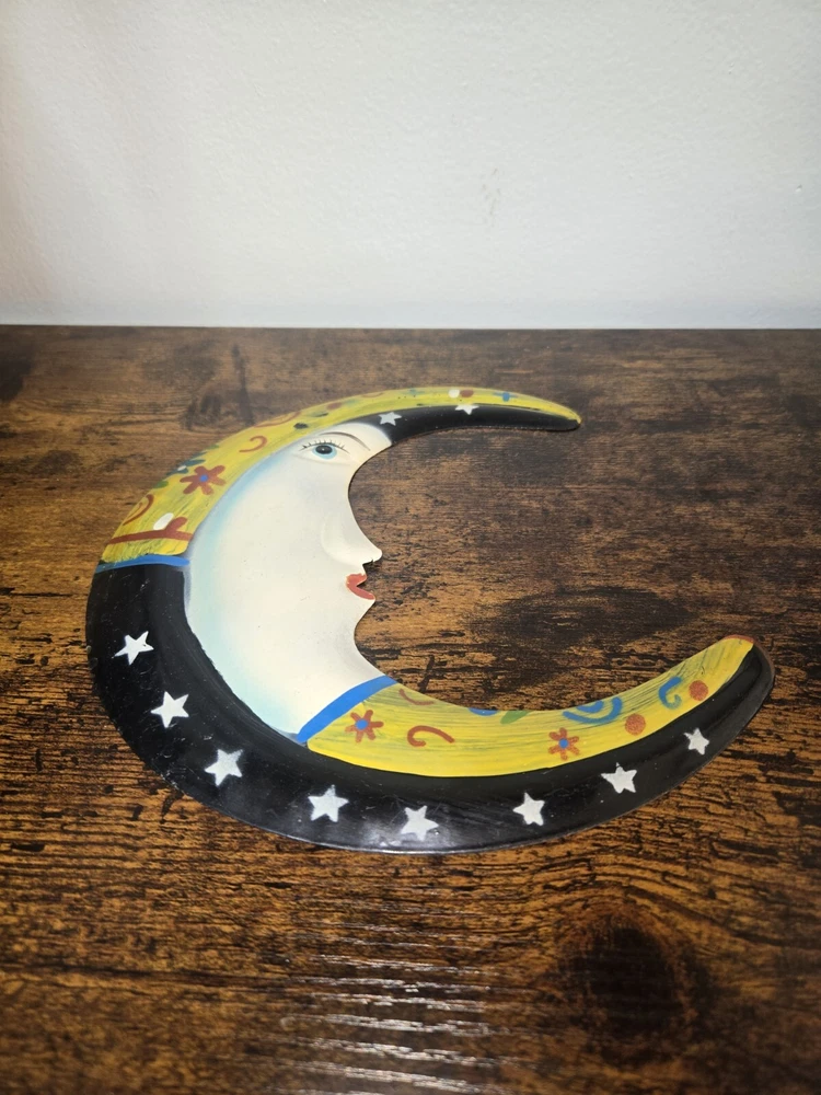Add a touch of vintage charm to your home décor with this beautifully crafted wall hanging piece. The intricate hand-painted design on the metallic finish of the tin and metal gives it a unique and timeless appeal. The piece features a sun theme, making it a perfect addition to your beach or summer decor. The wall hanging decor is designed for easy hanging and will add a touch of elegance to any room in your home. The vintage style and charm of this piece make it a must-have for collectors and lovers of all things unique.