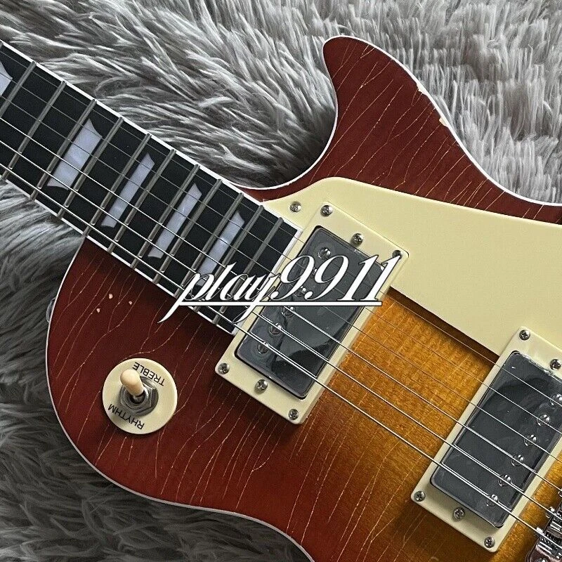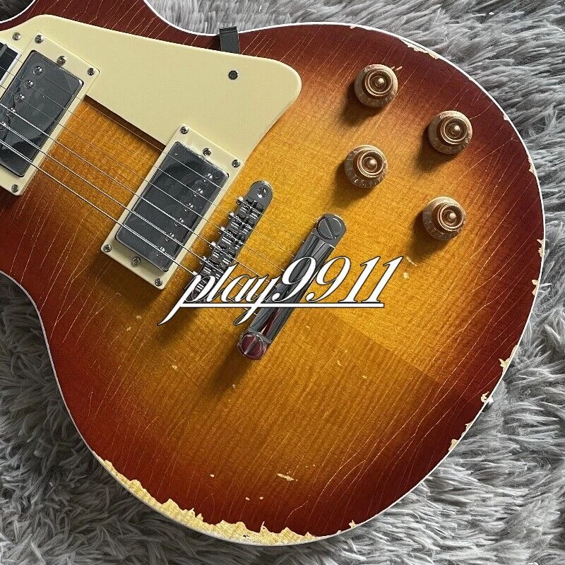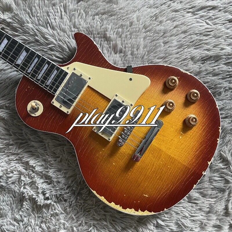 Vintage Sunburst LP Standard 50s Electric Guitar Relic Yellow Pick Guard Welcome to my store. My team has been making musical instruments for many years. I will try my best to provide the best item for you! Goods condition Body:Mahogany Neck: Mahogany Fingerboard: HPL Nut width: 43 mm Scale Length:24.7 inch Joint:Bolt on Hardware:Chrome Pickups:2 Humbuckers Pickup Switch:3-ways Electronic:2 Volume 2 Tone Bridge:T-O-M ABOUT THE PICTU RES The pictures are taken in our factories by ourselves. Each guitar is different from others because of the light in room or some other reasons .So there are maybe some differences between the pictures and the guitar you get. Every guitar cannot be the same in 100%, the pictures of the guitar that you see is just one of them. If you want some details about the guitar, please contact me. OUR GUARANT EE We test every guitar (such as buzzing, sound test, workmanship) is in good condition before it is shipped out. When you receive the guitar, if you meet some problems like readjustment the strings or you are not happy with our guitar, please let me know immediately and we will try our best to meet you satisfaction. CUSTOMIZED CENT ER Head stocks are not pictured per our policy. Custom Head stocks are available upon request from our factory custom shop. Please contact us for details. All customized products are non-returnable. SHIPPIN G Once payment has been confirmed, your item will be shipped within 3 or 30 business working days. That depends on specific goods deliver ways.The speed also base on Custom Clearance Speed, which we can't control .So if you want this for your gig next weekend it probably wont make it on time, so please keep that in mind when ordering. PACKIN G We use the carton which is designed for the International transport to package the products you ordered. And we can guarantee the items will not be damaged in the way of transportation. RETURN PO LICY If the item you received is broken or defective, please contact me immediately and return it within 3 days after you received it with the original or approved packaging. After we received it, we will give you a Full-Refund or Exchange. Buyers are responsible for return shopping costs. If you want to replace it, we will send a new one to you and then forward a shipping label. For missing or replacement parts(from the original order), we will ship them to you. Please read the RETURN POLICY before you order it! FEEDBA CK Thank you for your great comments and feedback. (a) When you are satisfied with your purchase, we sincerely hope that you can give us a positive feedback. Again, we will give you a positive feedback. (b) If you are dissatisfied with your purchase, please contact us submitting a neutral or negative feedback. We will respond to you in 24 hours and work with you until you are satisfied.