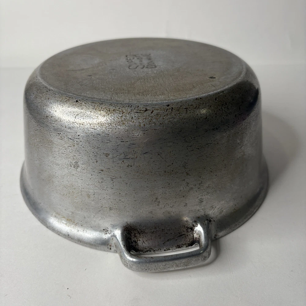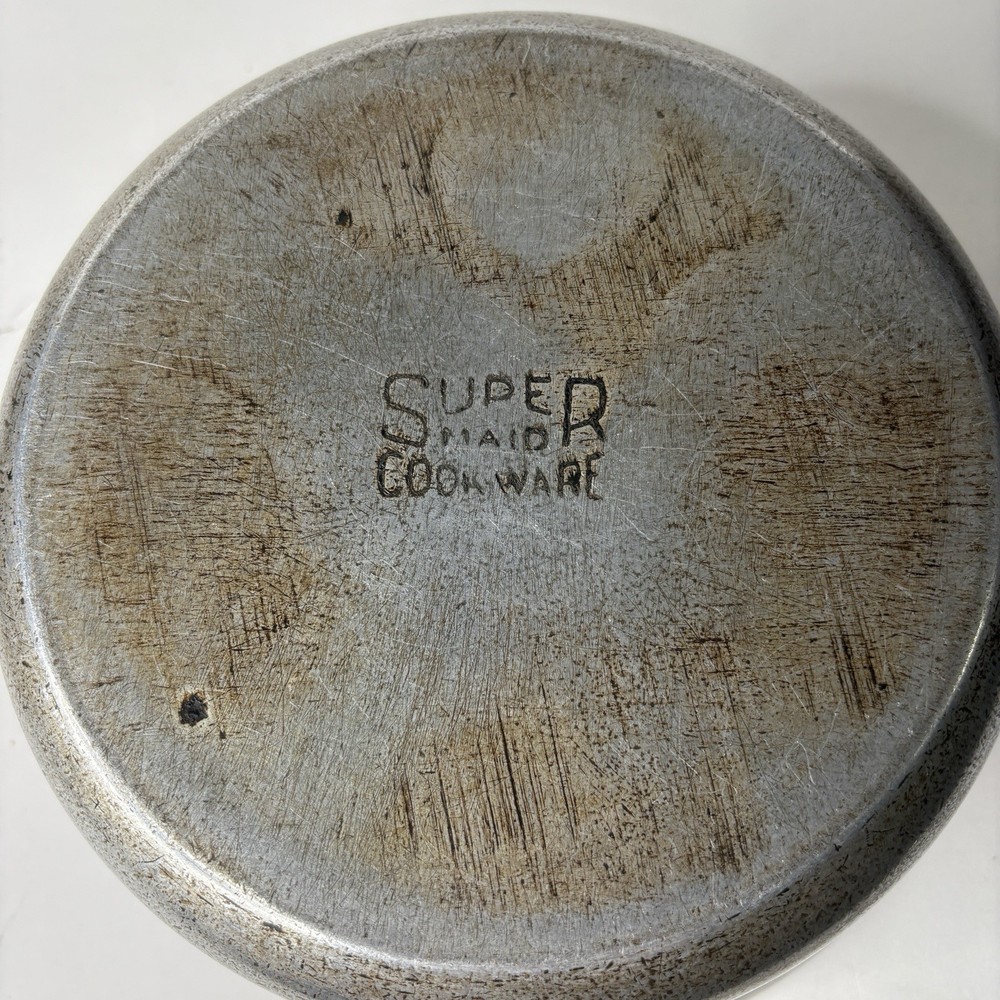 Super Maid Cookware Pot Vintage 8.75" x 3.5" Dutch Oven Pan Bottom preowned vintage condition shows some wear throughout - see photos about 8.75" D x 3.5" high appears to be the bottom of a dutch oven set B 1 12.0