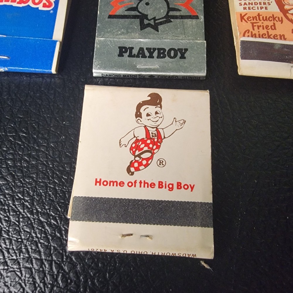 This lot of 7 vintage matchbooks from the 70s features some highly sought-after brands such as KFC, BOBS BIG BOY, wilshire Hotel of Beverly hills, sambos restaurant, playboy club. and HOOTERS. These rare collectibles are sure to appeal to matchbook enthusiasts and collectors alike, showcasing unique advertisements and designs from the era. The KFC has a couple missing but the rest are perfect. Each matchbook offers a glimpse into the past and adds a touch of nostalgia to any collection.