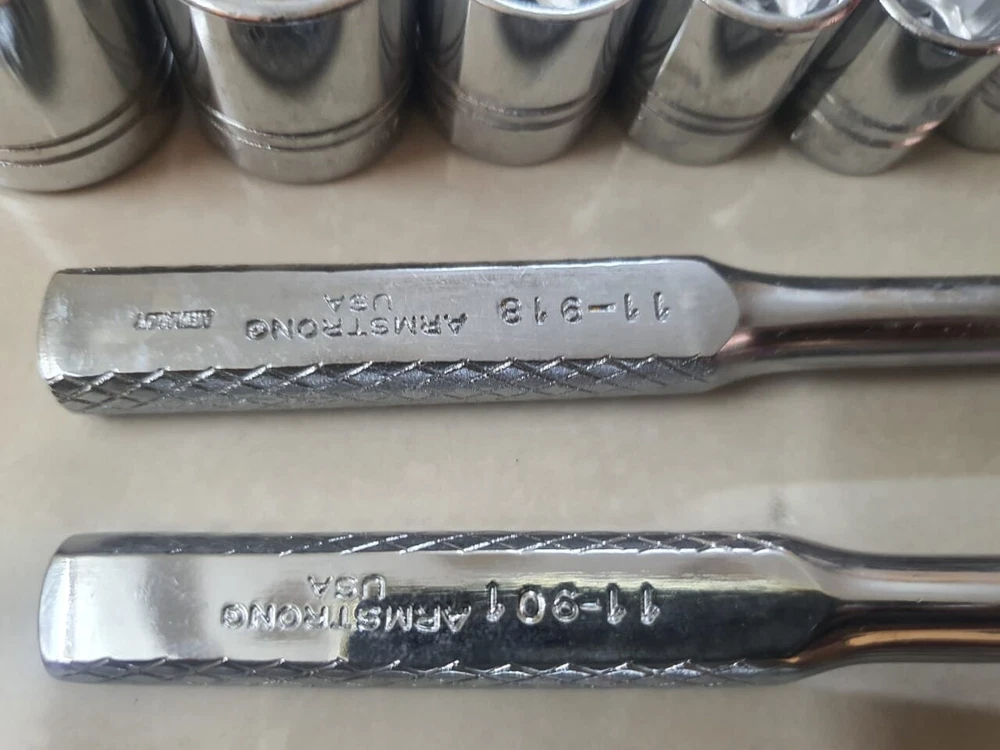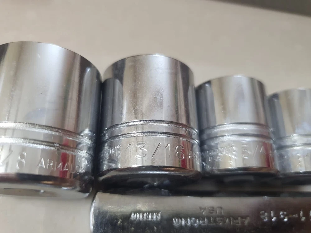 Vintage Nose Super Rare New Armstrong Tools Set 3/8 : Extension / Socket 80s/70s? , Made In Usa The list include : 1 - Armstrong set 3/8 ( 16 Pcs ) Extension and socket with original metal case and original carton pack ( not open ) , you can check the details of the socket and Extension of the pictures for the same model of another box , the cartone not open . Note : The tools stored for long time so may be u will find scratches , dirt , dust , or signs of age , and as i told u the carton pack not open Everything in the pictures is included. Anything not in the pictures is not included. Import duties, taxes and charges are not included in the item's price or shipping cost. These charges are the buyer's responsibility. Don't hestiate to contact me if u have any question