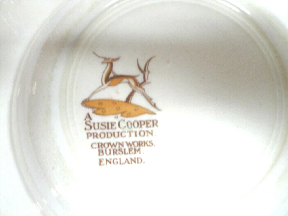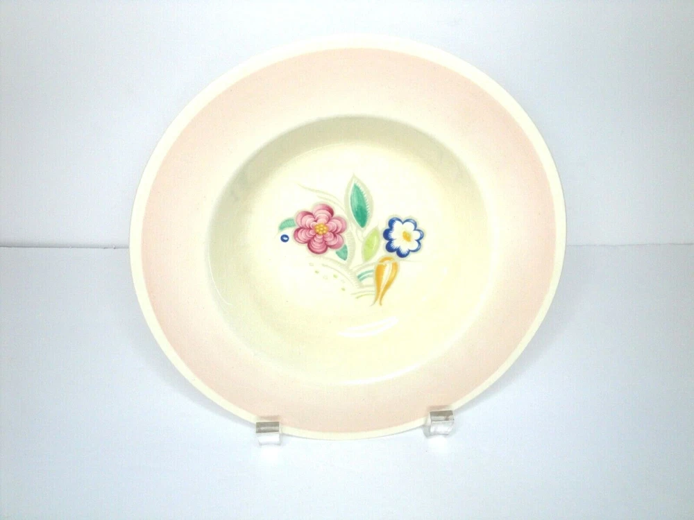 Vintage Susie Cooper Pink Nosegay Rimmed Soup Bowl, Burslem England. Good Condition, no cracks or chips, minor wear, does have crazing on the inside of the bowl; 8 1/8” in diameter, 1 3/8” high. Display stand in picture is not included. Please read the description carefully and ask any questions prior to buying. Thanks for your interest!