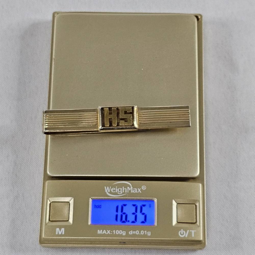 Vintage Swank Gold Tone Mens Tie Clip w/ Initials HS/SH Depending On Which Side It's On. Has Some Signs Of Use, Age, And Wear. Please Check All Pictures Closely For A More Detailed Visual Description Of Condition And Measurements. Ships Out Free Within One Business Day.