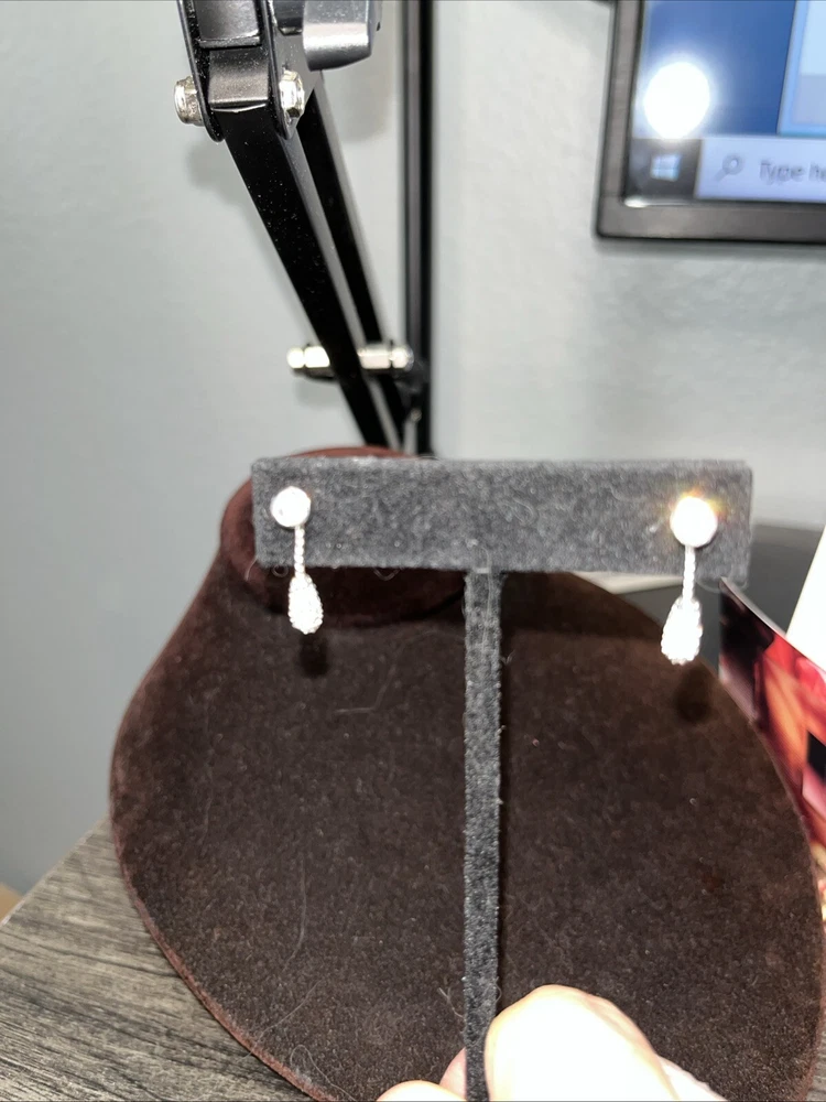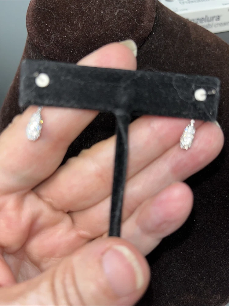 Elevate your style with these vintage Swarovski crystal rhinestone earrings. The teardrop shape and French wire closure make them perfect for any occasion. These earrings are signed and made of material, with a pave setting style. The white/colorless crystals and rhinestone secondary stone add a touch of elegance to the piece. The earrings are 3/4 inch in length and are designed to be worn on the lobe. They are authentic, handmade, and customized to fit your needs. The theme of the earrings is crystal, making them a great addition to any jewelry collection. Add a touch of sophistication to your outfit with these stunning Swarovski earrings. Can be worn as studs as well.