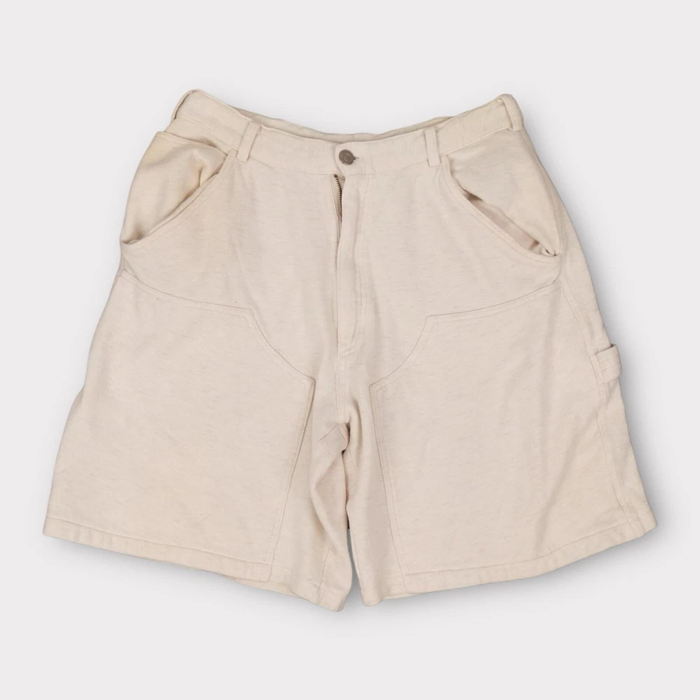 Upgrade your casual wardrobe with these vintage sweat shorts from Kearney House. Featuring a zip closure and drawstring waist, these cargo-style shorts are both stylish and functional. The 5-pocket design provides ample storage space, while the flat front and mid-rise fit give them a classic, timeless look. Perfect for summer, fall, or spring, these shorts are made from easy-care cotton material and are machine washable for your convenience. In addition to their practical features, these shorts also boast a hipster and school-themed design, making them a versatile choice for any casual occasion. With a solid white color and adjustable waist, these shorts are sure to fit comfortably and look great on any man. Don't miss out on this vintage gem! Tag Size: Men’s Large Best Fit: * Men: M/L Condition: Minor Yellowing Towards Waist Approximate Flat Measurements: * Waist: 15” * In Seam: 19” * Out Seam: 9” All items are second hand, many being vintage and may have small imperfections. Anything major is noted.