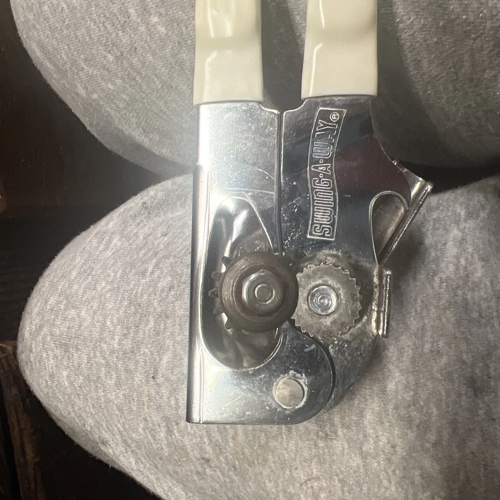 Size:7”Item Weight:10 oz.Original/Reproduction:OriginalItem Height:3 inModified Item:NoColor:WhiteBrand:SWING-A-WAYDepartment:AdultsItem Depth:2”MPN:Does Not ApplyType:Can OpenerMaterial:Stainless SteelShape:RectangleCountry/Region of Manufacture:United StatesItem Length:7”Food Compatibility:UniversalSet Includes:OpenerComponents Included:HandleNumber of Items in Set:1Item Width:3 in