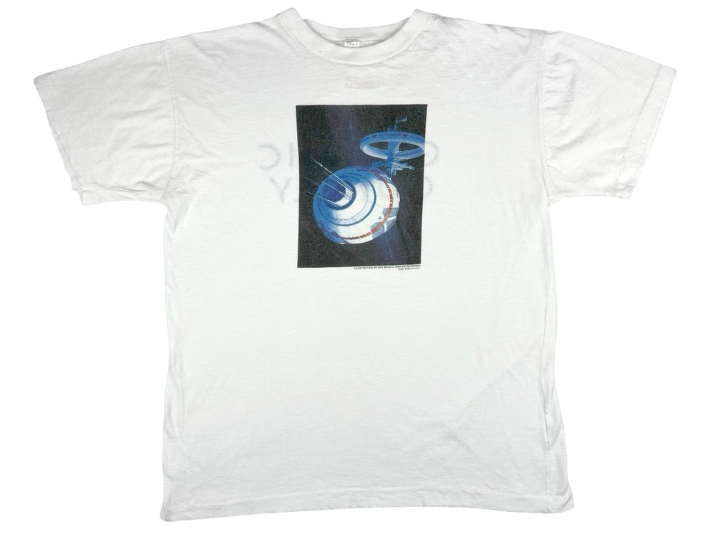 Size: Measures like a Medium Condition: Pre-Owned Material: 100% Cotton Measurements are taken with the garment laying flat. Armpit to Armpit: 21" Back Collar to Hem: 25" Comments: T-Shirt is in great vintage condition. Some signs of wear. Graphic on the front and back. Single stitch hems. There is a name label on the inside of the back collar.