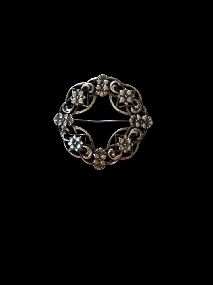 This vintage Symmetalic sterling silver and 14k pretty floral wreath pin brooch features a classic design with a wreath shape, showcasing the beauty of floral motifs. The combination of sterling silver and 14k gold adds a touch of elegance to the piece, making it a versatile accessory suitable for both men and women. The brand Symmetalic adds a unique element to the brooch, and the prong setting style enhances its overall appeal. A timeless and charming addition to any jewelry collection, this brooch exudes a sense of vintage charm and sophistication. Beautiful Pin! Good condition! Measurements: 4.5cm x 4.5cm If you have any questions please ask. **Please note I am a veteran seller of 17 years under (TheChic_SheShed) I opened this account to move my jewelry to, as I closed my etsy shop. So please do not mind the little to no feedback. Check out my other account.
