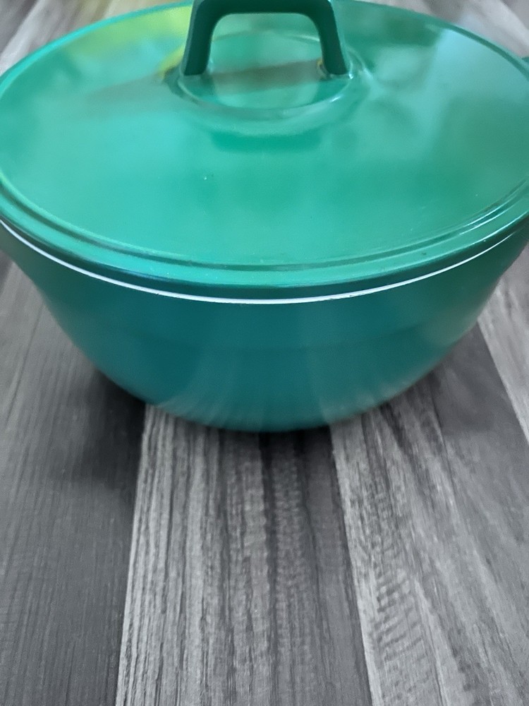 Rare T-Fal Cast Aluminum Enamel Cooking Dutch Oven Pot 10” X 5” Kelly Green Only used one time be me our family for bigger so I needed a bigger Dutch oven. Beautiful Kelly green I can’t find it anywhere on the internet. Dishwasher & oven safe.