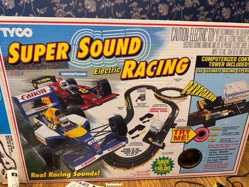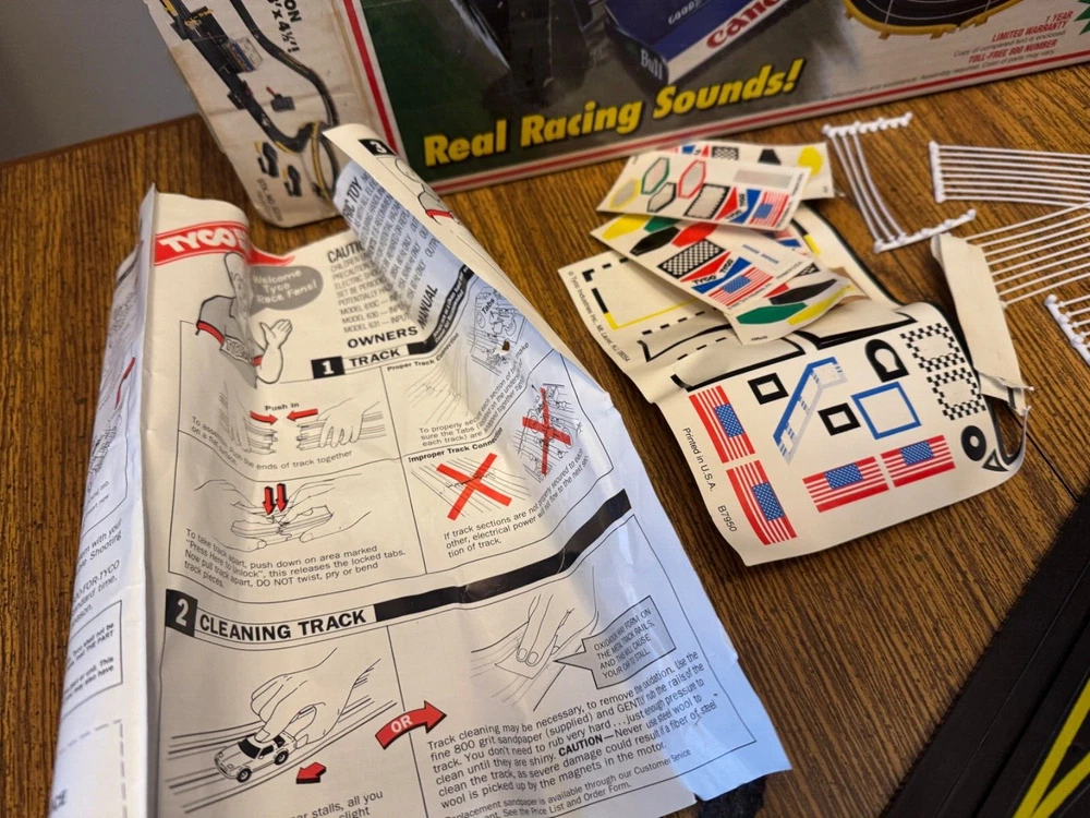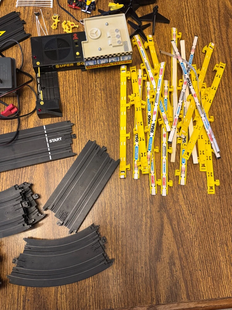 This set looks like it has all the parts except the bottom section of the control tower. I replaced the batteries. The sound works. I did not test the track. This has been stored in a closet for years in its original box. No returns. Nonsmoking home.