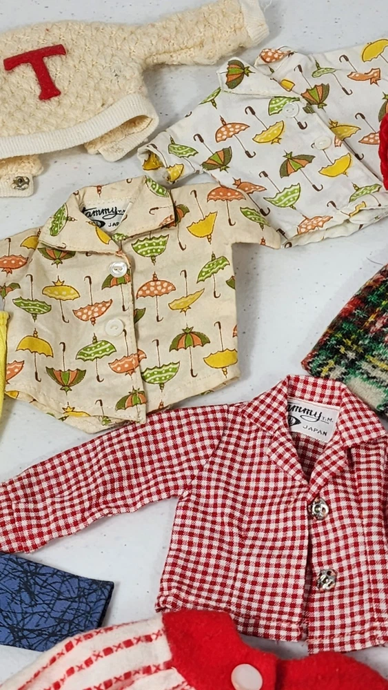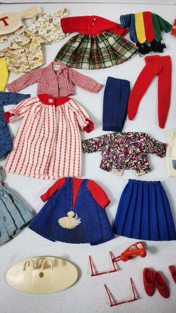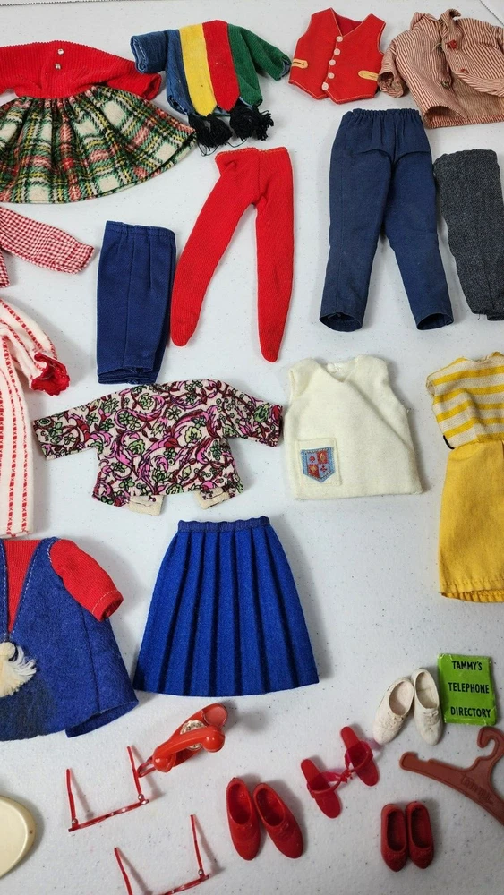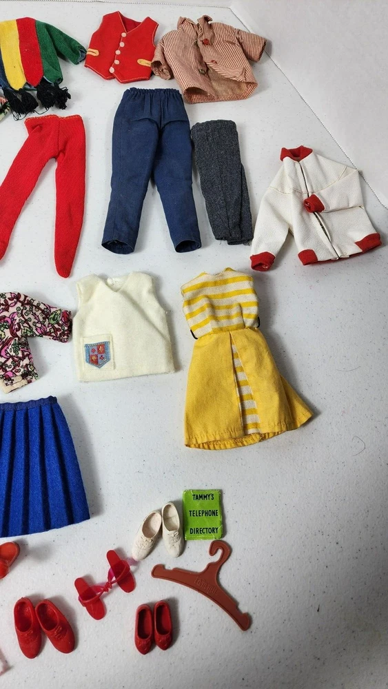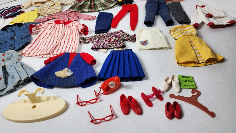 Condition Rating N New or new with tag. S Like new, barely used. A Good condition with minor signs of use. B Used condition with some damages/flaws. C Overall, there is sign of heavy usage with major damage/flaws. Item description: TAMMY DOLL, MOM AND DAD FAMILY CLOTHING AND ACCESSORIES LOT. 34 +++PLUS PIECES. THE MAJORITY ARE IN VERY GOOD TO EXCELLENT VINTAGE CONDITION. BLUE DRESS NEEDS A LITTLE REPAIR ALL CLOTHING WILL FIT A TAMMY, TAMMY MOM AND SEVERAL FIT TAMMYS DAD OR BROTHER RED TENNIS SHOES HAVE HONG KONG INSIDE ONE PAIR OF SHOES FIT PEPPER DOLL AND ALSO AN BLUE AND RED DRESS SOME NEED WASHING, AND SEVERAL HAVE MINOR STAINS. TAGS PRESENT Please scan, enlarge and review all photos closely for they are a large part of the description. Photos are of the actual item offered for sale. Payment : please pay immediately Communication: Please contact me if you have any questions prior to purchase. Shipping and handling: will ship within 1 business day whenever possible. Please verify your address during checkout. I offer free returns within 30 days , if item doesn't match the description. Returns must be initiated within 7 days after delivery. Item must come back in the same condition and packaging as it was sent to you for a refund