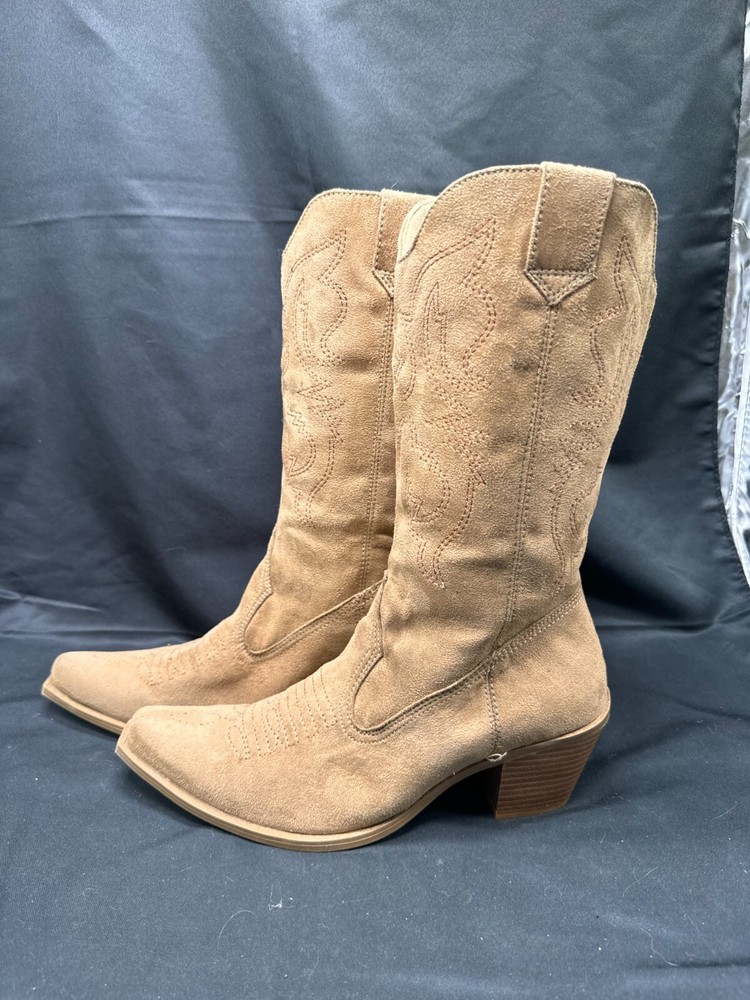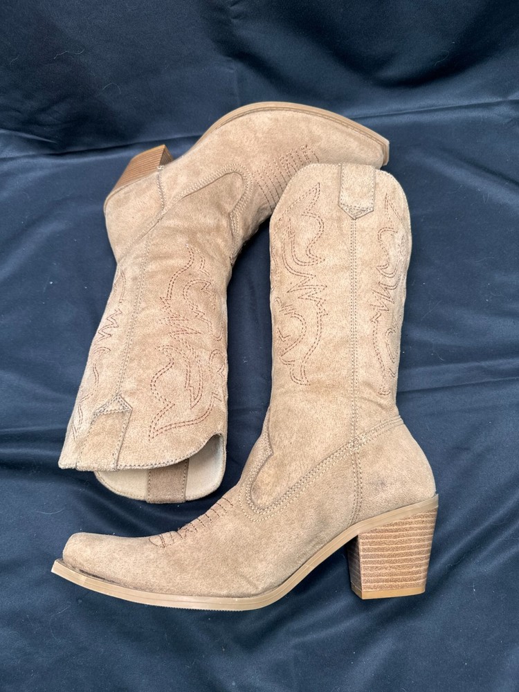Vintage Mia Girl Larue Tan Western Faux Leather Heeled Cowgirl Boots Size 7