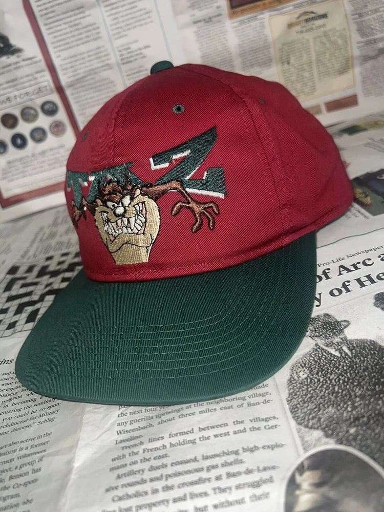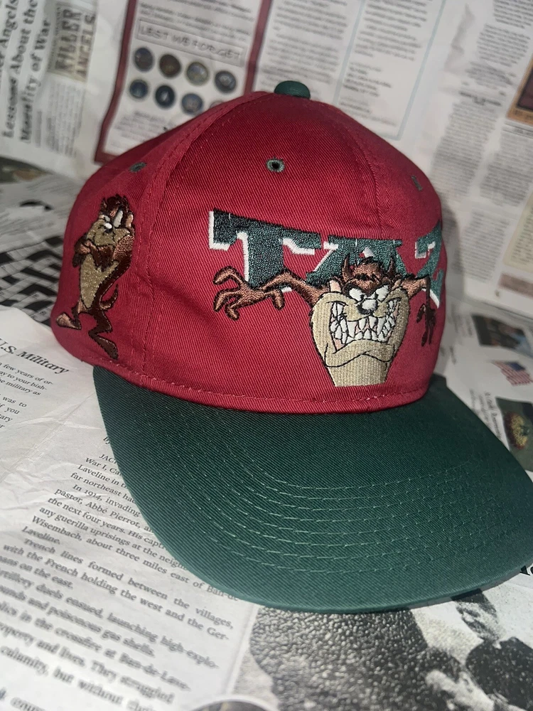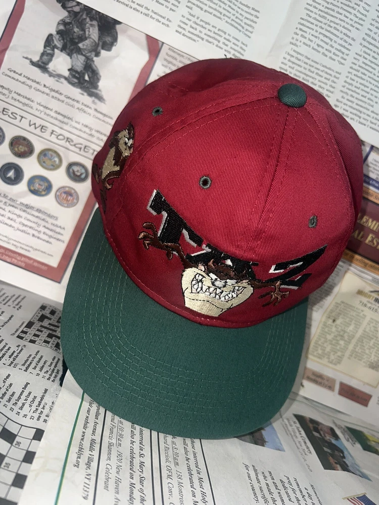 Vintage Taz Hat Cap Snap Back Red Big T Looney Tunes One size
