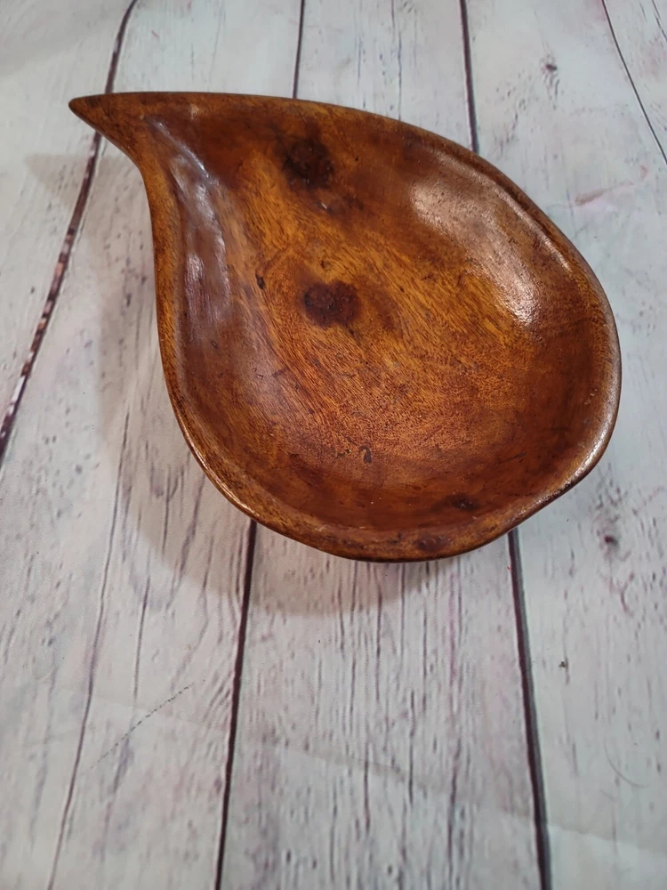 Vintage Tear Drop Shaped Wooden Bowl. Please let us know if you have any questions or concerns regarding this item or any other item in our store. Thank you for your interest! /spacecowboy