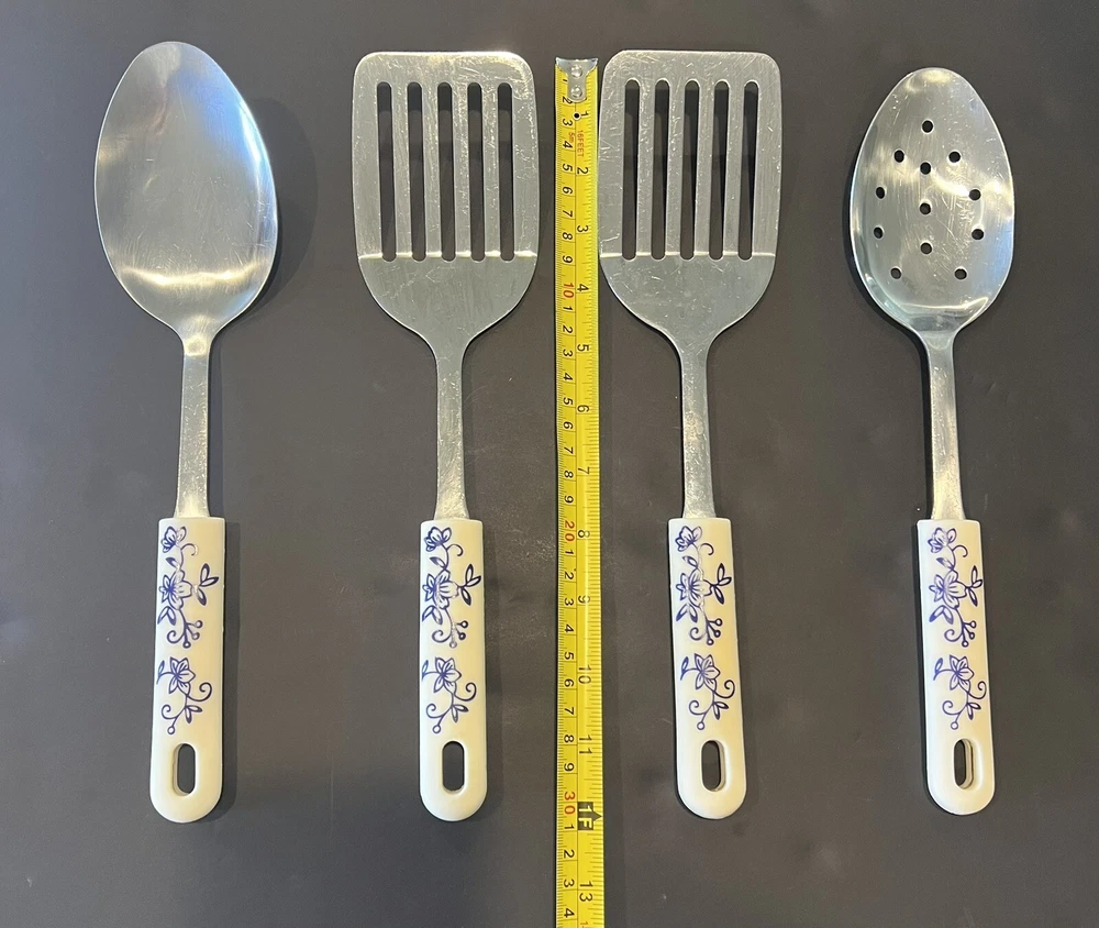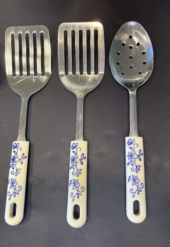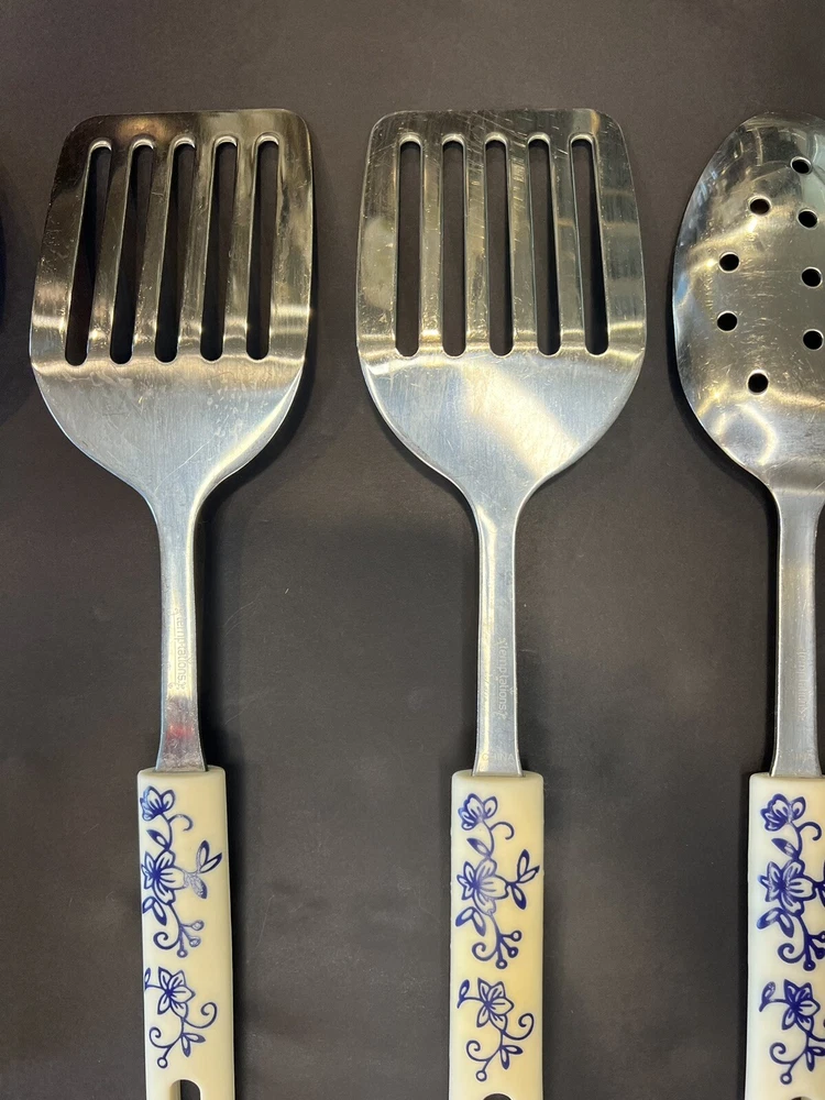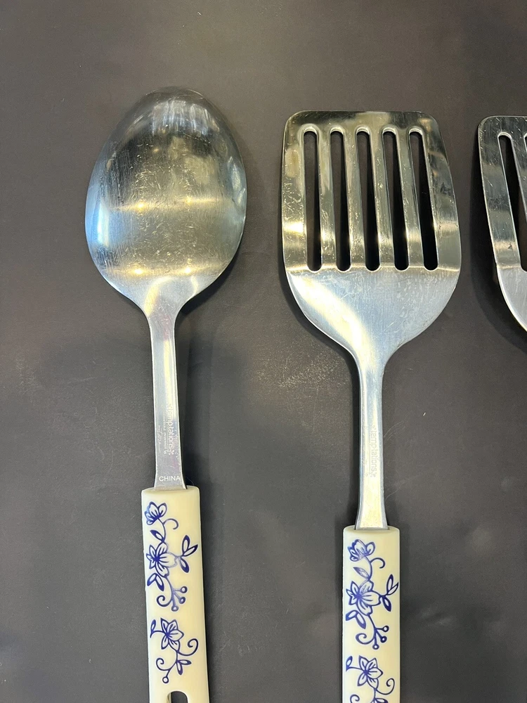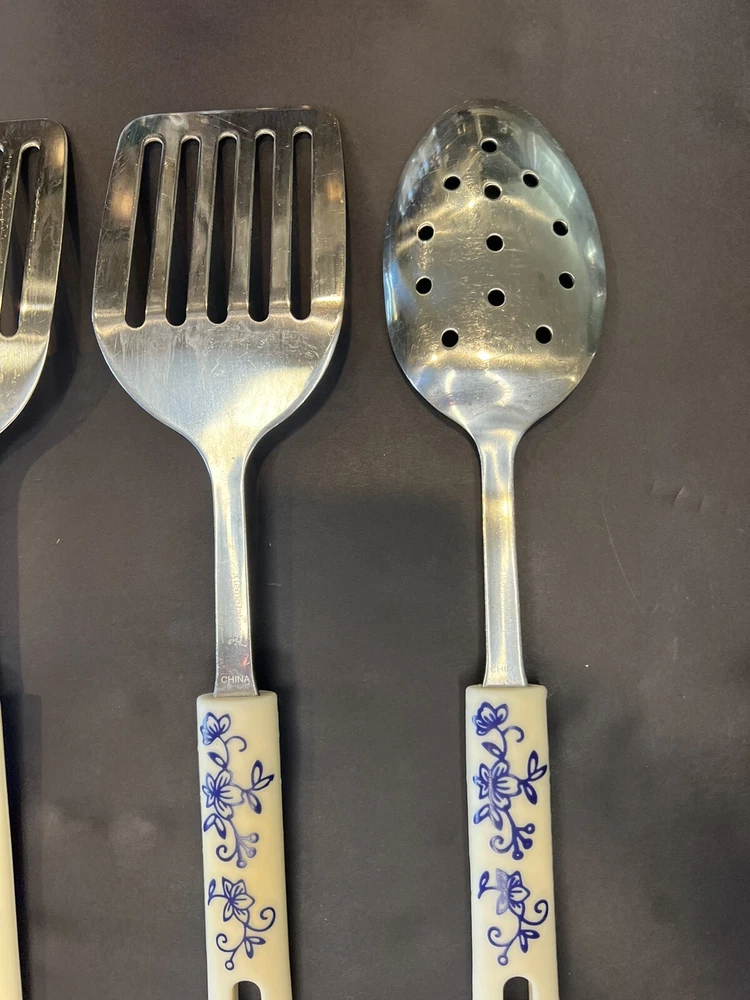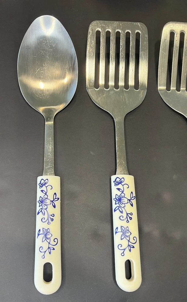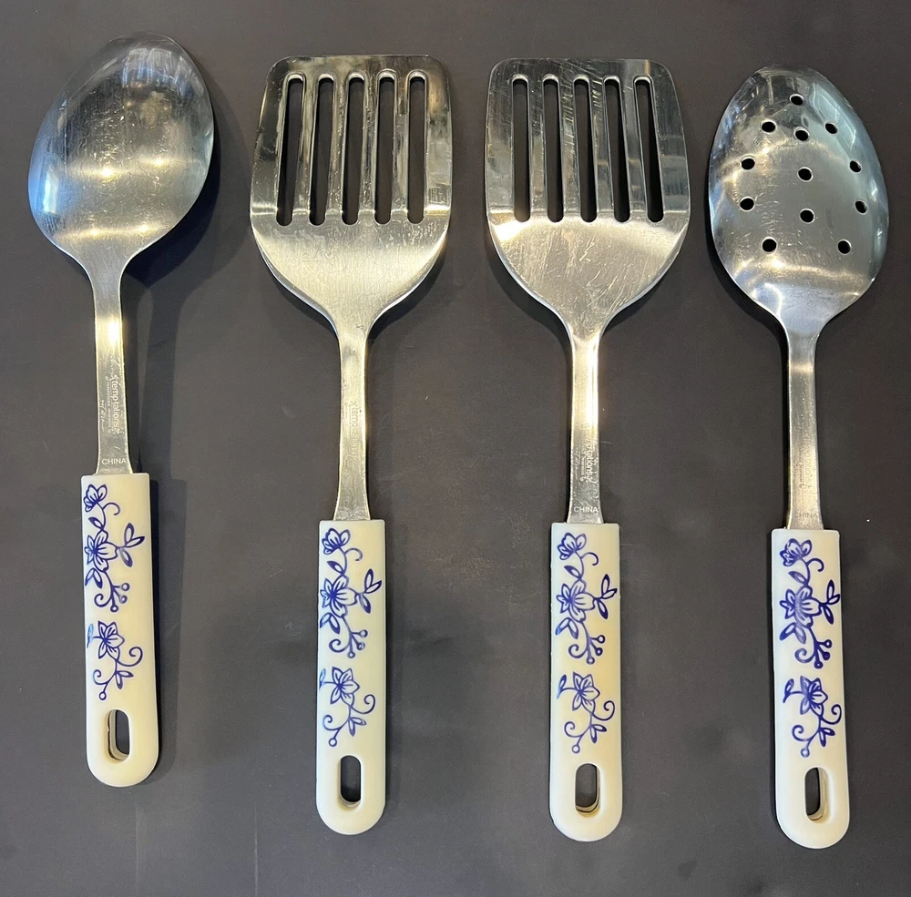 Vintage Temptations Cooking Utensils Blue And White Set Of 4 Spatula Spoon
